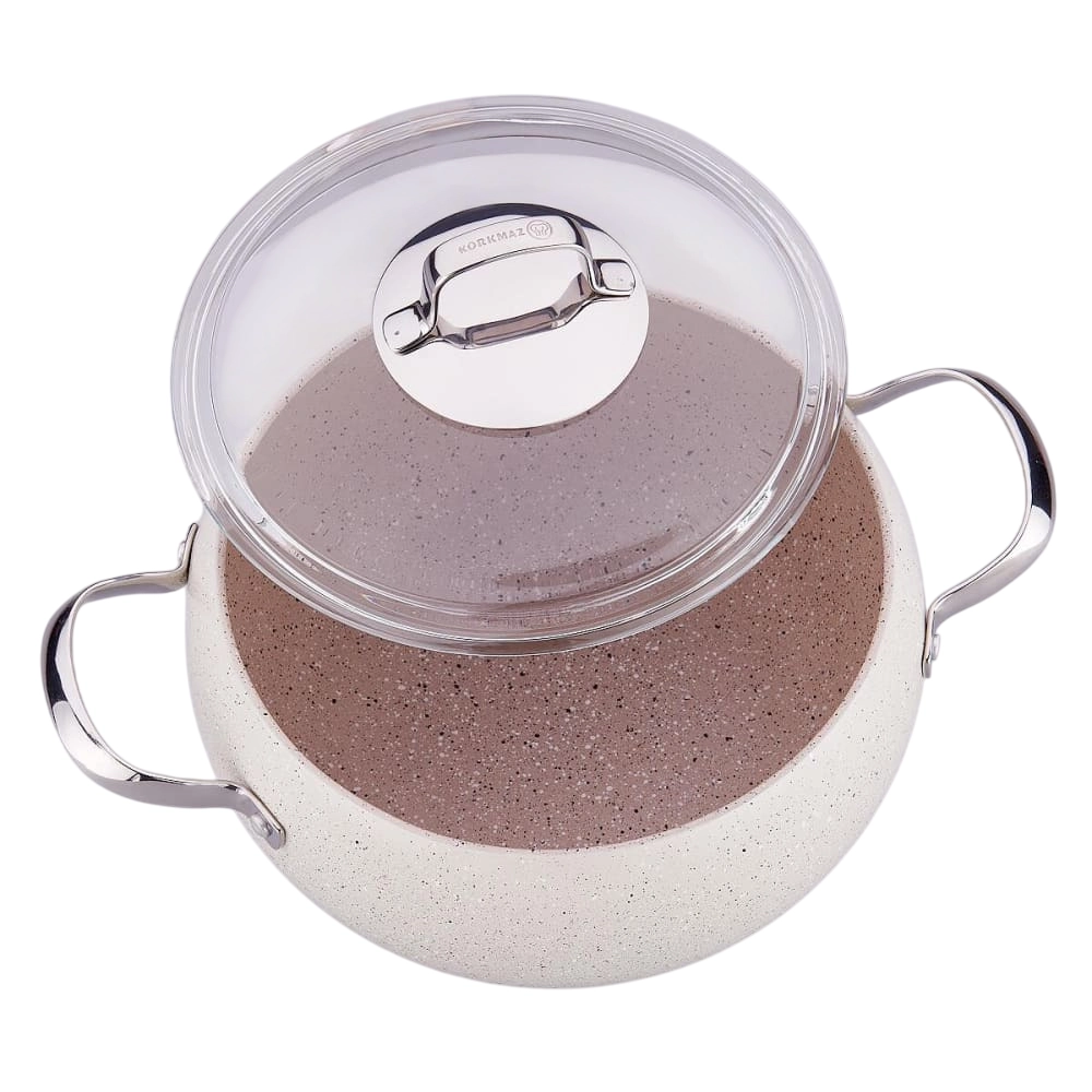 Yopishmaydigan qoplama tufayli Korkmaz Mondea A2656 ortiqcha yog‘siz sog‘lom ovqat tayyorlash imkonini beradi va murakkab tozalashga vaqt sarflashni talab qilmaydi. Idishlar tez qiziydi va uzoq vaqt issiqlikni saqlaydi, bu esa dimlash va sekin pishirish uchun ayniqsa qulay.