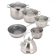 Tashqi yaltiroq ishlov berilishi to‘plamga zamonaviy va nafis ko‘rinish bag‘ishlaydi, u har qanday oshxona interyeriga mos tushadi. To‘plam kundalik ovqatlar bilan birga bayramona taomlar tayyorlash uchun ham juda qulay, sifatli choynak esa yoqimli qo‘shimcha bo‘lib xizmat qiladi.