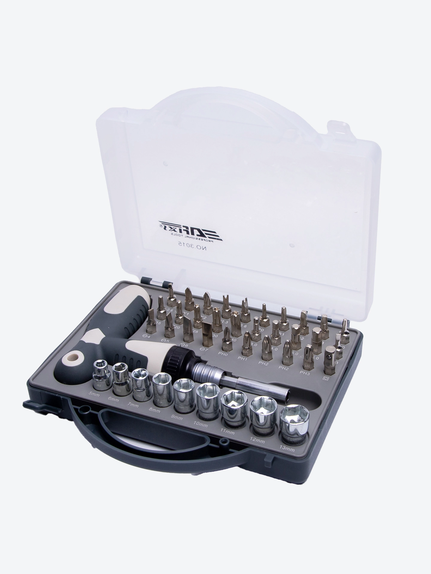 To'plam turli o'lcham va turdagi o'tvertkalarni o'z ichiga oladi, bu esa uni har xil ishlarni bajarish uchun universal qiladi.