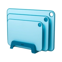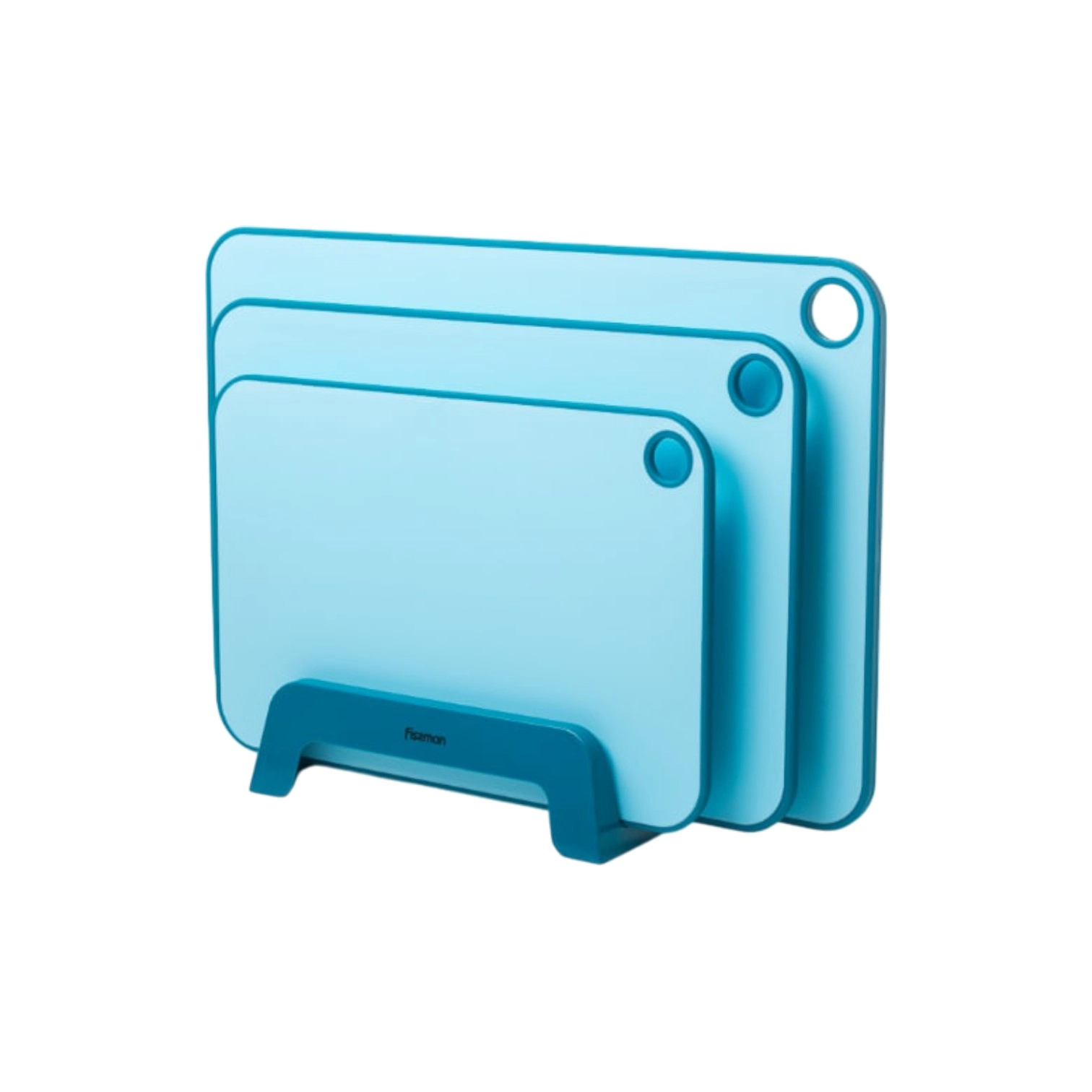 Turli o'lchamdagi uchta kesish taxtasi to'plami. Plitalar bardoshli, oziq-ovqat uchun xavfsiz plastmassadan tayyorlangan va zamonaviy ko'rinishga ega. Ular hidlarni o'zlashtirmaydi va deformatsiyaga va aşınmaya qarshilik kuchayadi. Tozalash oson, ishlatish uchun oddiy va bardoshli. Yuqori sifatli va yorqin dizayni tufayli to'plam har qanday oshxona interyeriga juda mos tushadi.Idish yuvish mashinasida yuvishingiz mumkin.