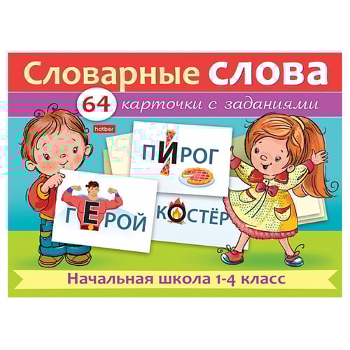 Наглядное пособие для детей, 64 карточки, 80×120 мм — «Словарные слова. Начальная школа, 1–4 класс»