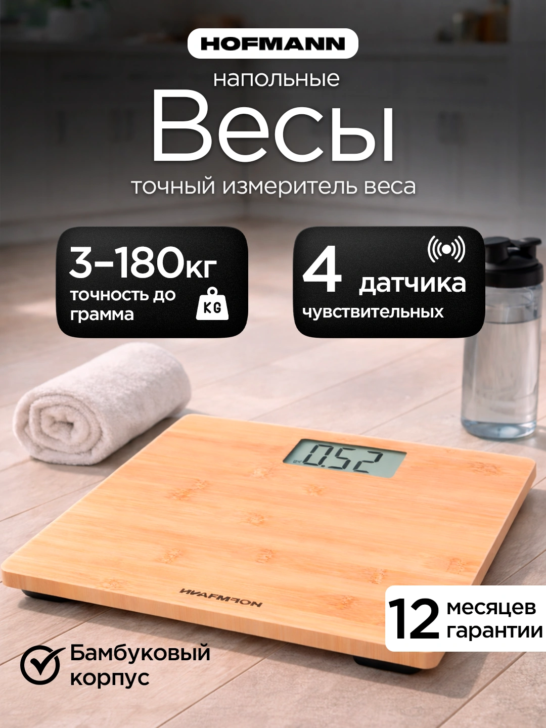 Hofmann HBS3030LDWP/HF pol tarozilari — bu aniq o‘lchov, zamonaviy dizayn va maksimal qulaylikning mukammal uyg‘unligi bo‘lib, kundalik vazn nazorati uchun ideal yechimdir. Bambuk va plastikdan tayyorlangan korpus qurilmaga nafis ko‘rinish berib, uni interyerning zamonaviy qismiga aylantiradi.