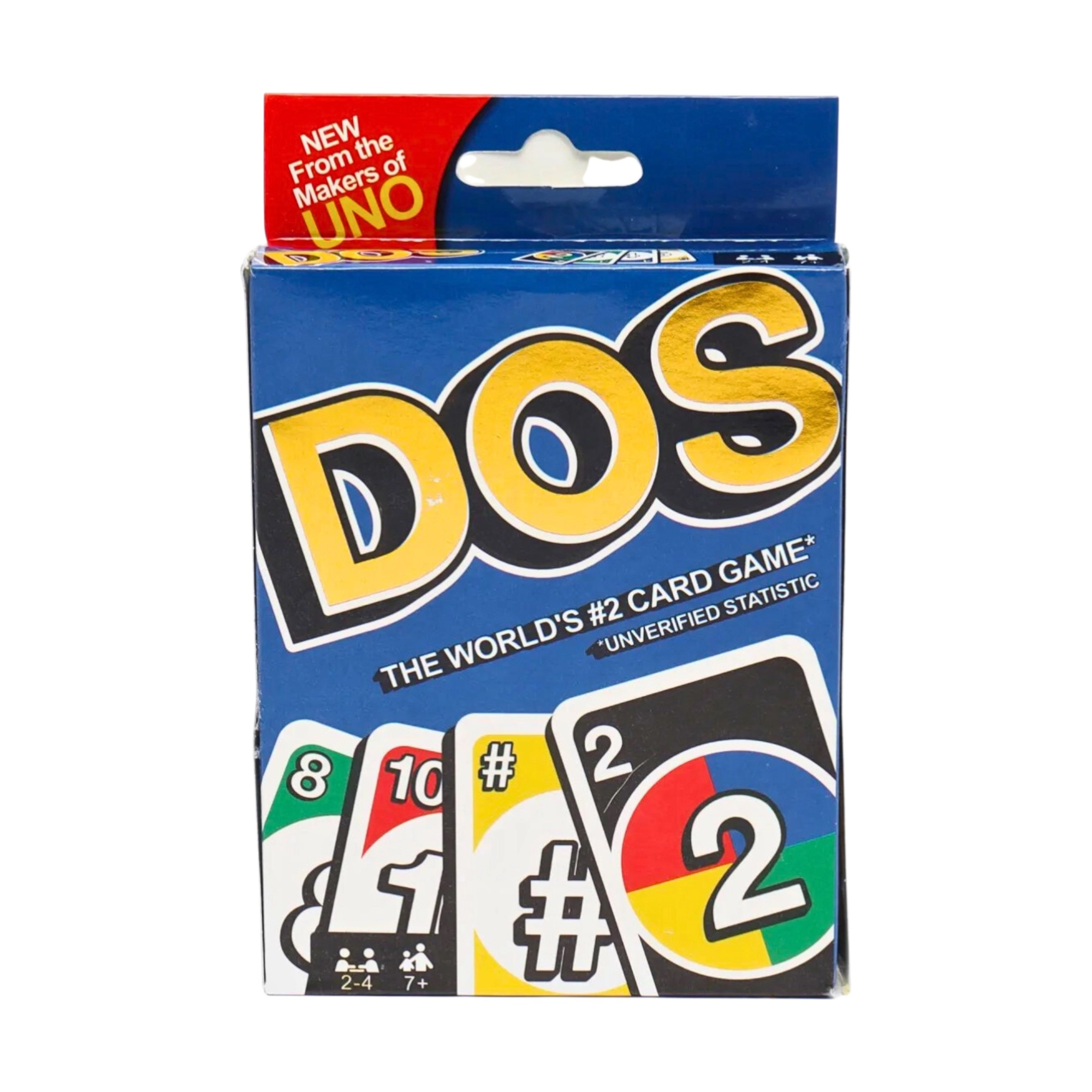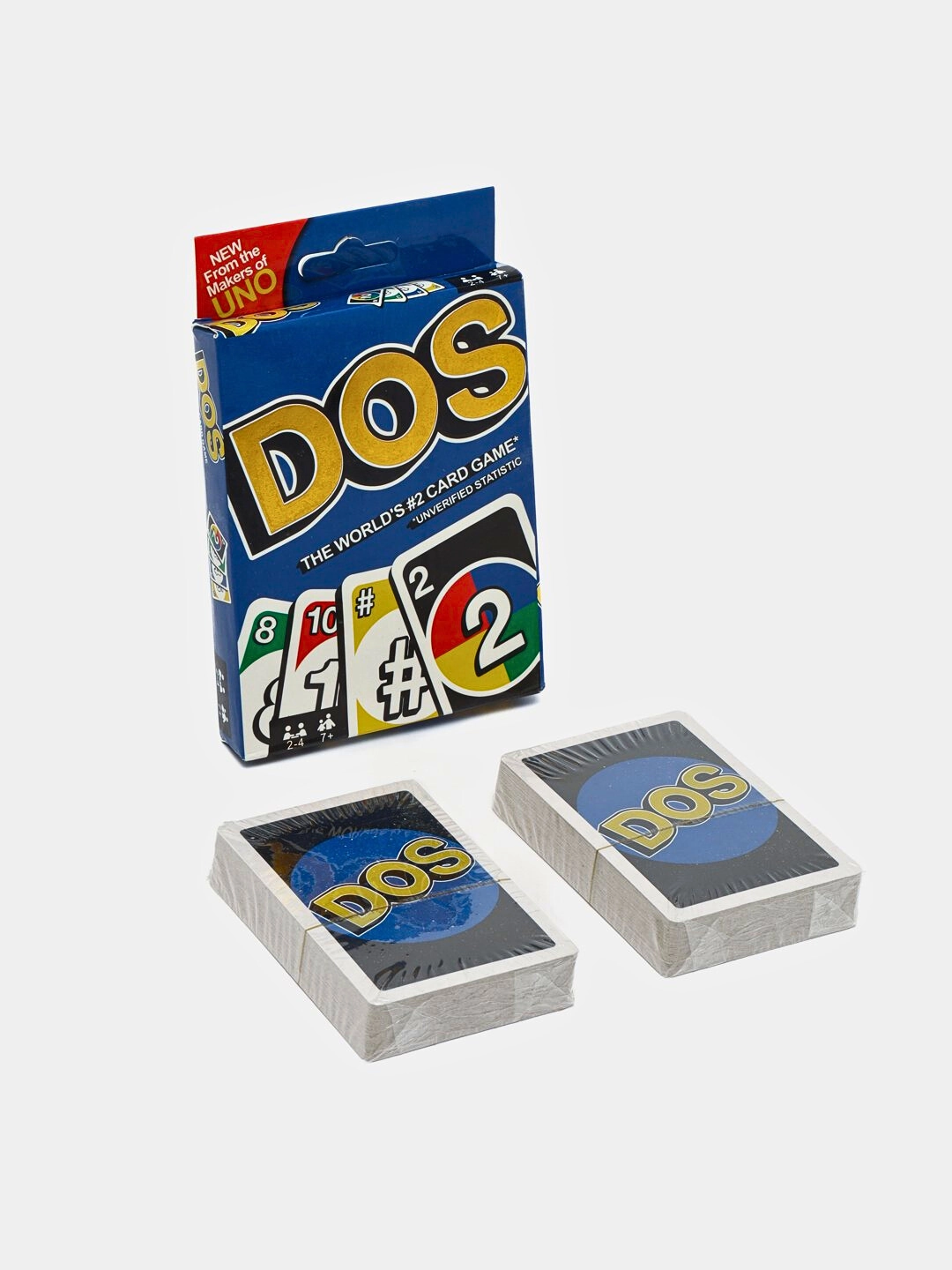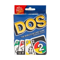 Bu quvnoq karta o‘yinida ikki — har doim bittadan yaxshiroq, eng zo‘ri esa — sonlar mos kelganda! UNO kabi, DOS o‘yinining maqsadi ham — birinchi bo‘lib barcha kartalardan qutulish.