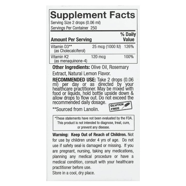 Nature's Answer Vitamin D3 + K2 — это жидкая пищевая добавка, объединяющая два важнейших жирорастворимых витамина для поддержания здоровых костей, сердечно-сосудистой и иммунной системы.