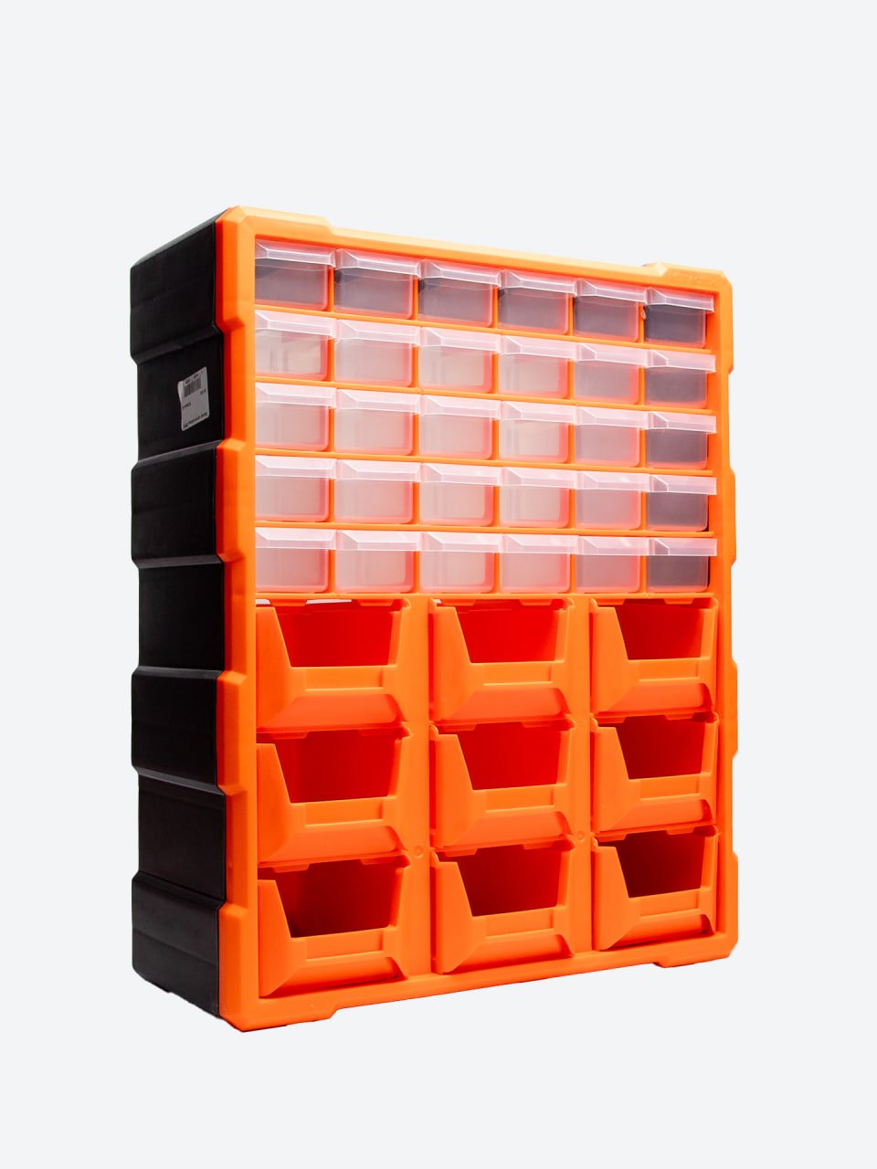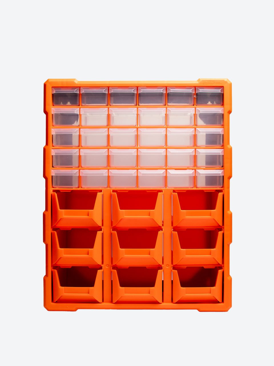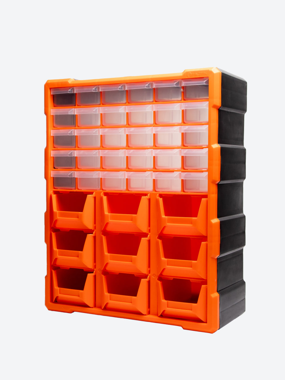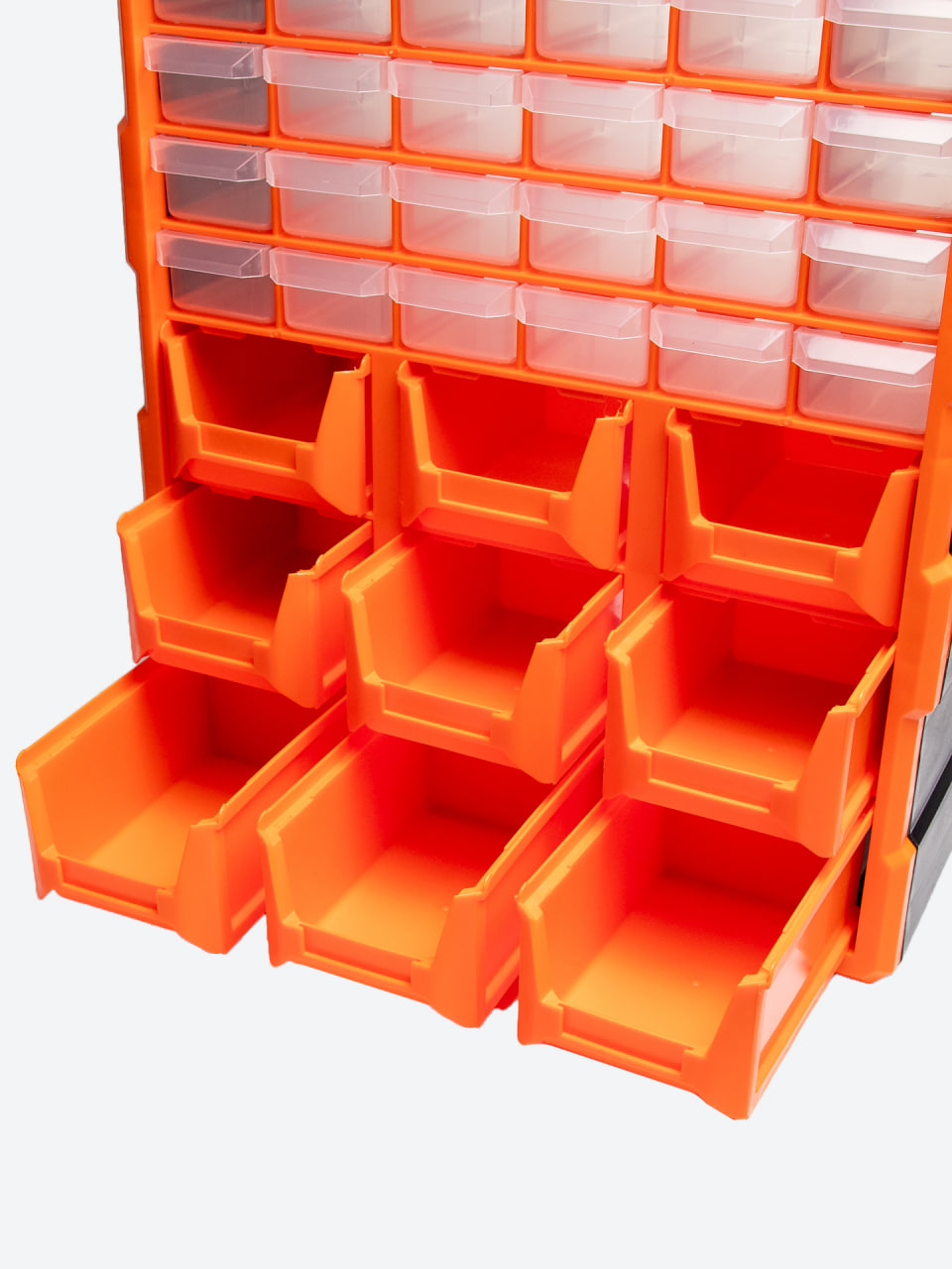 ✅ Верхняя часть — мелкие выдвижные ячейки (болты, гайки, саморезы, электро-компоненты)