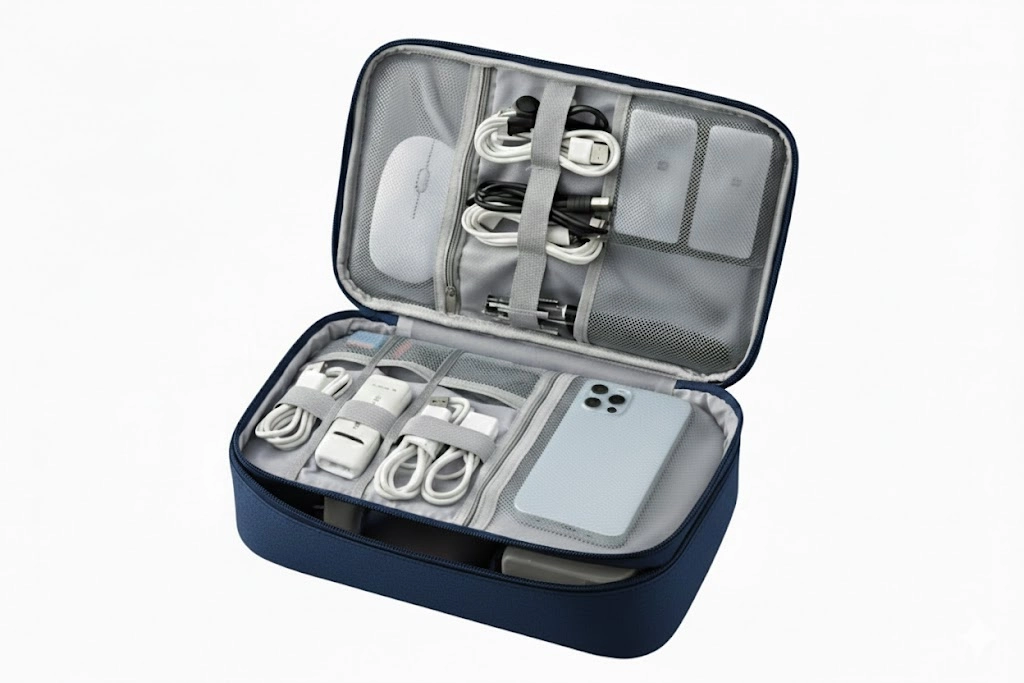 Har doim chalkashib ketadigan kabellar, yo'qolib qoladigan fleshkalar va himoyasiz qolgan gadjetlardan charchadingizmi? Ushbu organayzer — sizning barcha qurilmalaringiz uchun mukammal tartib va xavfsizlik maskani!