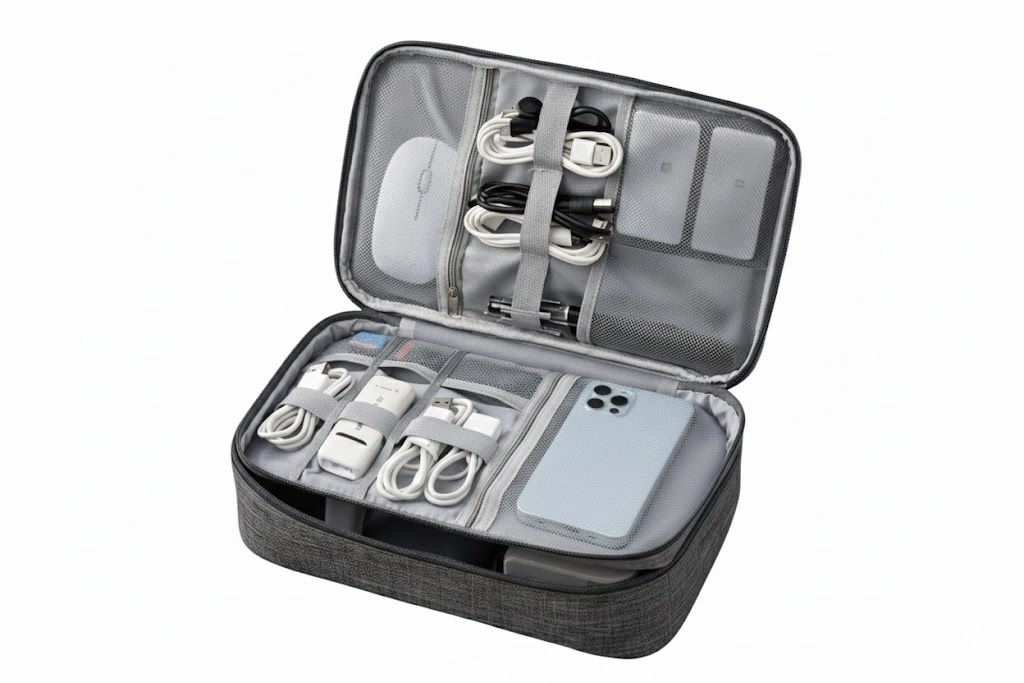 Har doim chalkashib ketadigan kabellar, yo'qolib qoladigan fleshkalar va himoyasiz qolgan gadjetlardan charchadingizmi? Ushbu organayzer — sizning barcha qurilmalaringiz uchun mukammal tartib va xavfsizlik maskani!