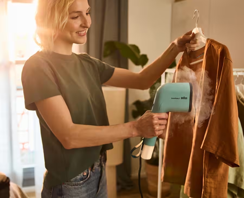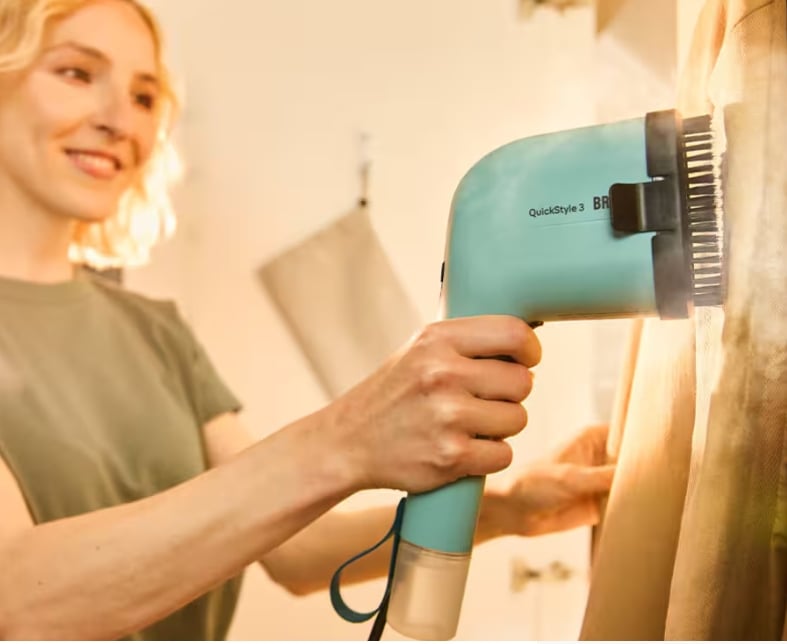 Braun QuickStyle 3 — самый компактный отпариватель для одежды от Braun, созданный для динамичного образа жизни, путешествий и экономии пространства. Его ультра-узкий и стильный дизайн идеально подходит как для поездок, так и для хранения дома: прибор можно повесить на крючок, убрать в ящик или положить в ручную кладь.