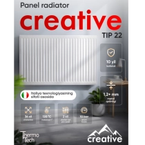 Creative panel radiatori zamonaviy dizayn, yuqori issiqlik uzatish va ishonchlilikni o‘zida mujassam etgan. U ThermoTech.uz kompaniyasi tomonidan Italiya texnologiyasi asosida ishlab chiqarilgan bo‘lib, uzoq muddat xizmat qilish va yuqori sifatni kafolatlaydi. Turar-joy, ofis va tijorat binolari uchun juda mos, har qanday interyerga uyg‘unlashadi.