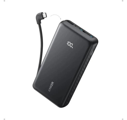 Встроенный кабель USB-C избавляет от необходимости носить дополнительный провод. Порты USB-C и USB-A позволяют одновременно заряжать несколько устройств. Функция сквозной зарядки (Pass-through) даёт возможность заряжать сам павербанк и подключённые устройства одновременно.