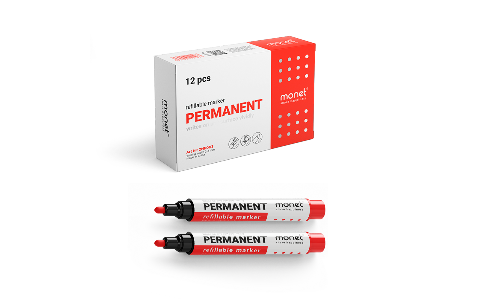 Перманентный маркер или несмываемый маркер - который используется для создания постоянной надписи на предмете. Они способны писать на самых разных поверхностях - от бумаги до металла и камня. Изготовлены на спиртовой основе. Корпус маркера выполнен из пластика, имеет цилиндрическую форму. Удобно держать в руке во время письма. Стержень выполнен в пулевидной форме (универсальной) и имеет толщину от 2 до 3 мм в диаметре, достаточно твердый и плотный. Пишет без характерного скрежета по поверхности, оставляет мягкую линию. Следы перманентного маркера трудно смываются, поэтому их хорошо используют в промышленности. Так же перманентные маркеры изготовленные на основе спирта стойкие к высоким температурам. Чтобы, как можно дольше пользоваться маркером, рекомендуется хранить маркер в горизонтальном положении и закрывать сразу после использования колпачком.