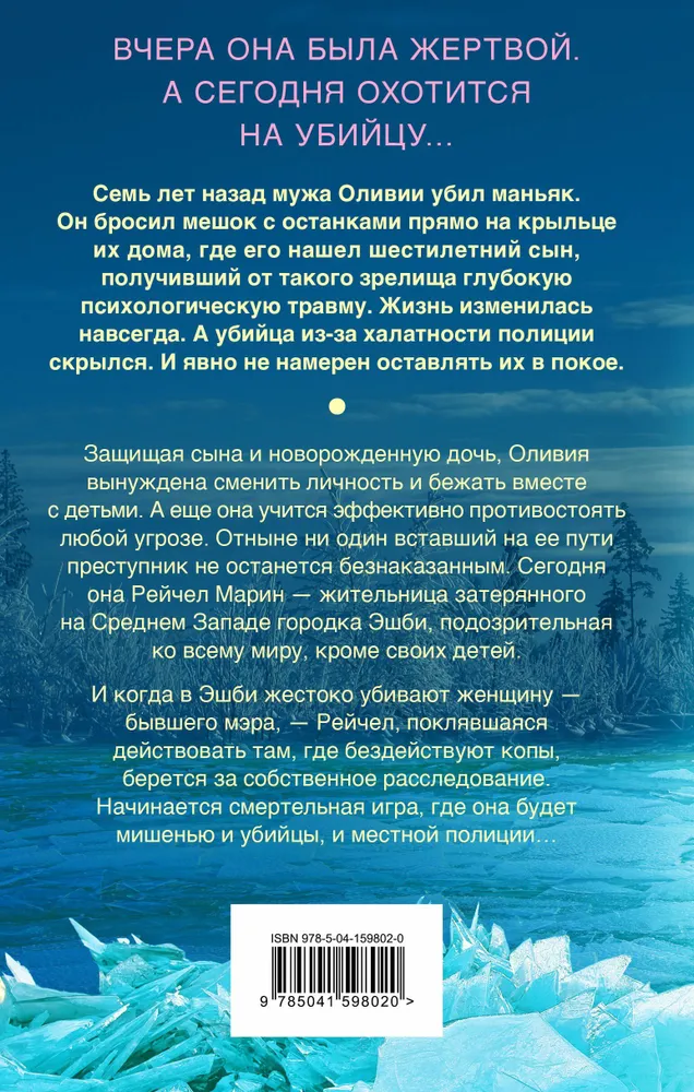 Вчера она была жертвой. А сегодня охотится на убийцу… Семь лет назад мужа Оливии убил маньяк. Он бросил мешок с останками прямо на крыльце их дома, где его нашел шестилетний сын, получивший от такого зрелища глубокую психологическую травму. Жизнь изменилась навсегда. А убийца из-за халатности полиции скрылся. И явно не намерен оставлять их в покое. Защищая сына и новорожденную дочь, Оливия вынуждена сменить личность и бежать вместе с детьми. А еще она учится эффективно противостоять любой угрозе. Отныне ни один вставший на ее пути преступник не останется безнаказанным. Сегодня она Рейчел Марин – жительница затерянного на Среднем Западе городка Эшби, подозрительная ко всему миру, кроме своих детей. И когда в Эшби жестоко убивают женщину – бывшего мэра – Рейчел, поклявшаяся действовать там, где бездействуют копы, берется за собственное расследование. Начинается смертельная игра, где она будет мишенью и убийцы, и местной полиции…