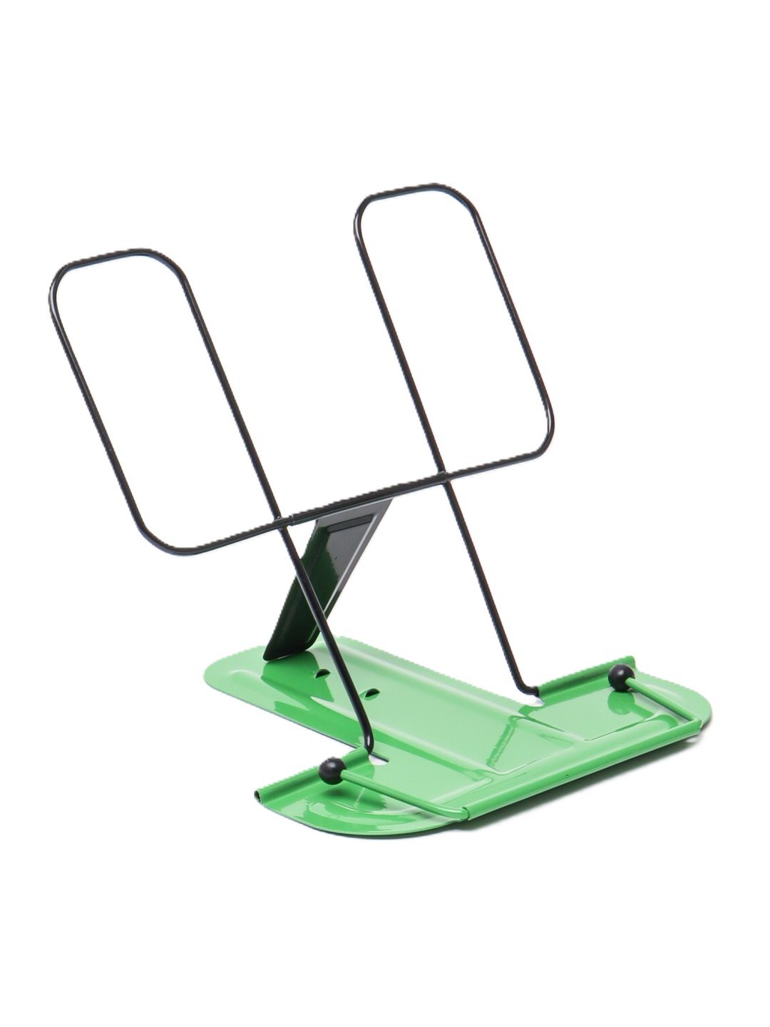Зелёная подставка сделана из качественных материалов, надёжно удерживает даже тяжёлые книги и не скользит по поверхности стола. Фиксаторы не дают страницам перелистываться, что особенно удобно при подготовке к экзаменам или работе с большими текстами. Компактный складной механизм позволяет хранить подставку даже в небольшом рюкзаке, а яркий зелёный цвет добавляет рабочему месту аккуратный, стильный вид.