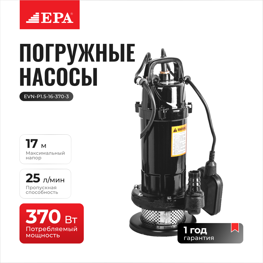 Таким образом, насос EPA (EVN-P1.5-16-370-3, 370 Вт) является отличным решением для тех, кто ищет надёжное и производительное оборудование для водоснабжения.