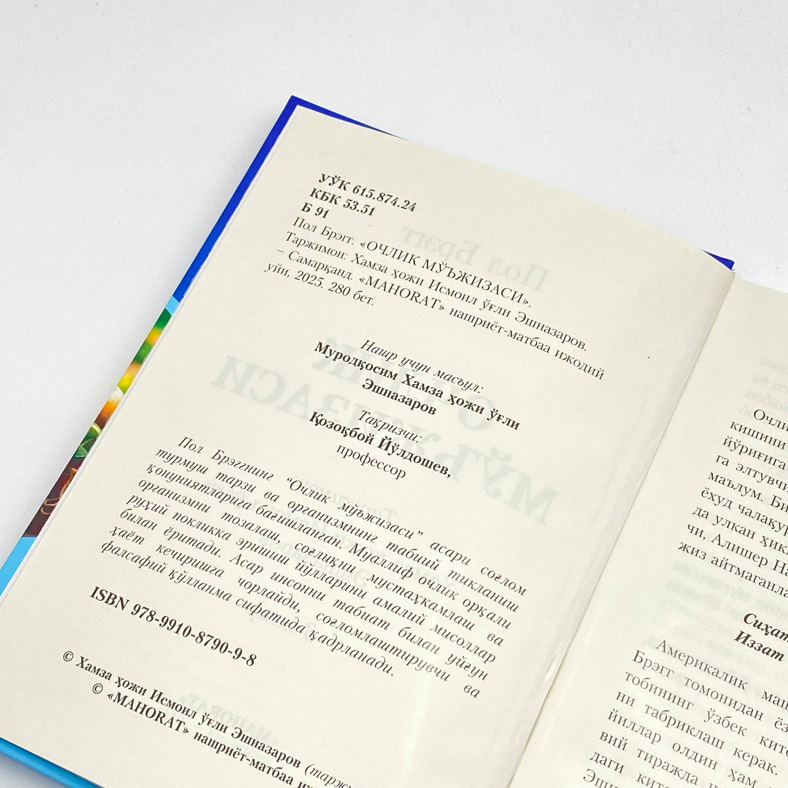 Пол Брэгнинг «Очлик мўъжизаси» асари соғлом турмуш тарзи ва организмнинг табиий тикланиш қонуниятларига бағишланган. Муаллиф очлик орқали организмни тозалаш, соғлиқни мустаҳкамлаш ва руҳий покликка эришиш йўлларини амалий мисоллар билан ёритади.