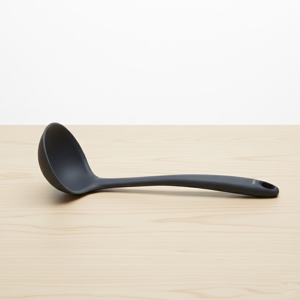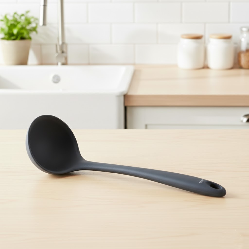 • Современный серо-черный цвет делает половник визуально лёгким и гармоничным аксессуаром на кухне.