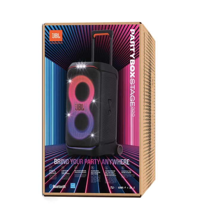 JBL PartyBox Stage 320 — это беспроводная акустическая система нового поколения с фирменным звуком JBL Original Pro Sound, яркой RGB-подсветкой и возможностью работы до 18 часов. Идеальный выбор для вечеринок, мероприятий на открытом воздухе и караоке.