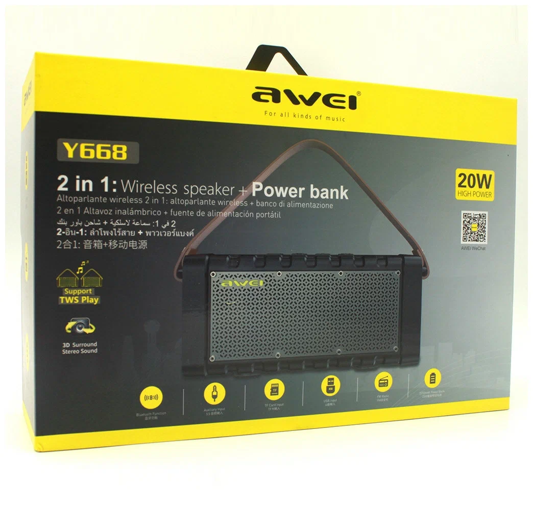 1 год гарантии от производителя Примем товары в течении 10 дней и сразу вернём деньгиAwei Y668 — мощный звук и энергия в одном корпусе