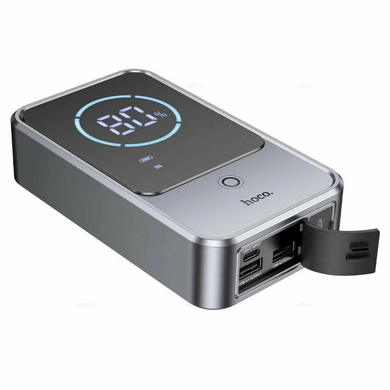 Hoco QS7 — портативный аккумулятор с функцией пуско-зарядного устройства, обладающий высокой ёмкостью и универсальностью. Благодаря аккумулятору на 10000 мА·ч (37 Вт·ч) устройство обеспечивает быструю и надёжную подзарядку гаджетов, а также может использоваться для запуска автомобиля в экстренных ситуациях. Оснащён LED-дисплеем для отображения уровня заряда и корпусом из огнеупорного ABS+PC пластика. Компактный и удобный для переноски.