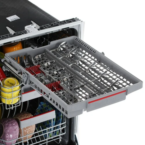 Для безопасности предусмотрена полная защита от протечек AquaStop (корпус + шланг). Регулируемые по высоте корзины, третья корзина-лоток для приборов, полка для чашек и верхний разбрызгиватель обеспечивают продуманную организацию внутреннего пространства. Машина поддерживает использование средств «3 в 1» и может подключаться к горячей воде до 60 °C.