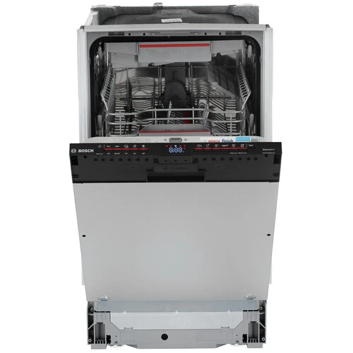 Встраиваемая посудомоечная машина Bosch SPV4HMX55Q сочетает в себе компактный формат, продвинутые технологии и элегантный дизайн. Узкая конструкция идеально подходит для небольших кухонь, а стильная чёрная панель управления с информативным дисплеем делает использование машины современным и удобным. На экране отображается наличие соли, ополаскивателя и точное время до завершения программы — всё под контролем одним взглядом.