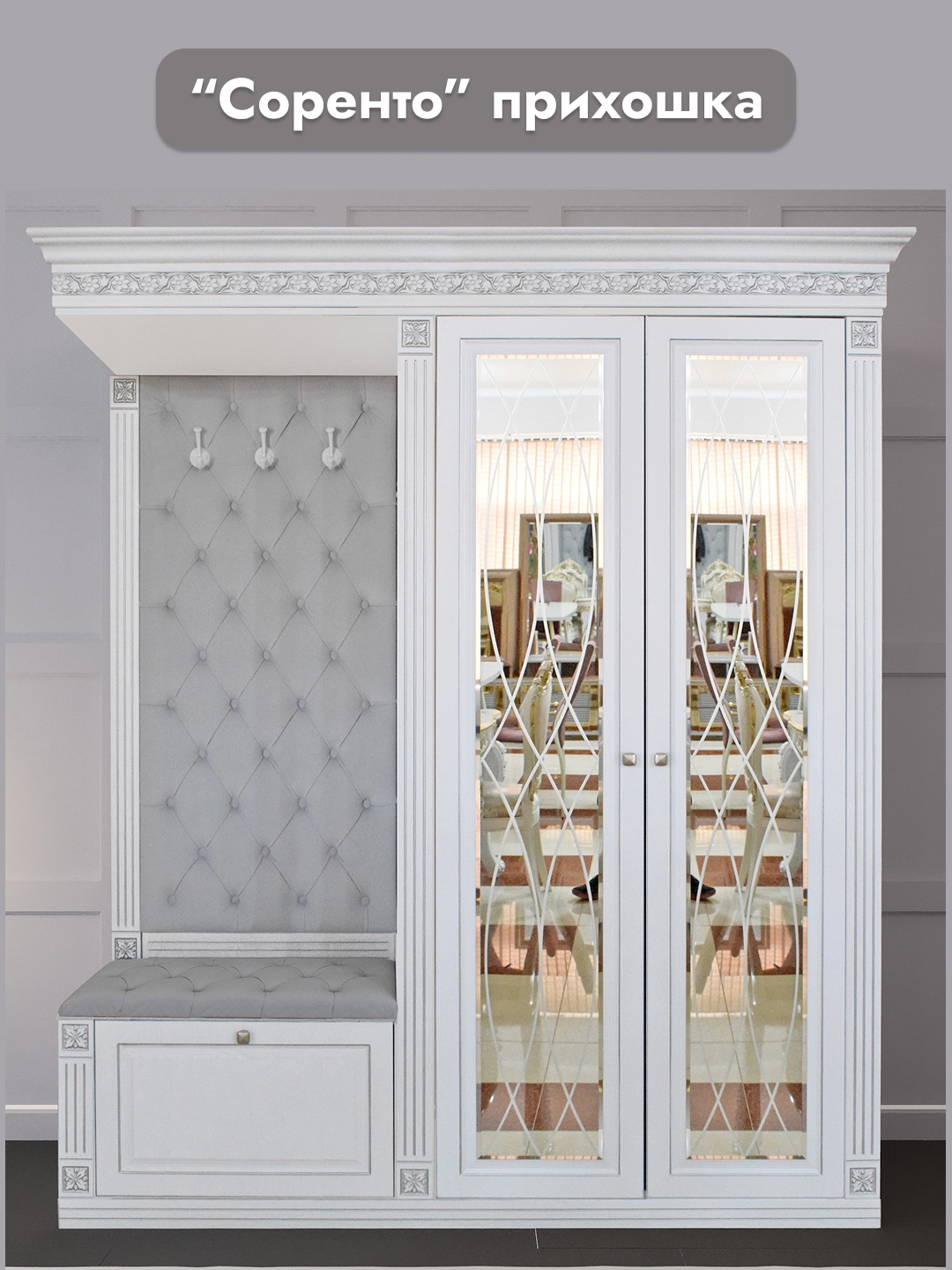 “Sorento” 1,8 metrli kirish xonasi mebel to‘plami — Grand Miks (Qozog‘iston) fabrikasida ishlab chiqarilgan zamonaviy va ixcham yechimdir. Ushbu mebel kirish xonasini qulay, tartibli va chiroyli tarzda jihozlash uchun juda mos bo‘lib, hatto kichik maydonlarda ham maksimal funksionallikni ta’minlaydi.