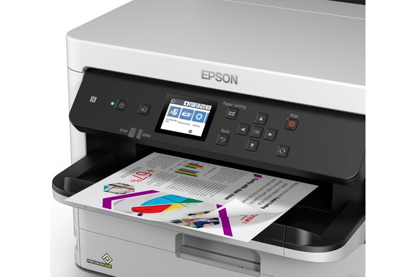 Epson WorkForce Pro WF-5390 — это струйный принтер нового поколения, созданный для офисов, которым важны скорость, экономичность и долговечность. Модель сочетает высокое качество печати и минимальную себестоимость страницы благодаря пигментным чернилам, устойчивым к влаге, смазыванию и выцветанию. Принтер рассчитан на большие нагрузки и легко справляется с ежедневным потоком документов.