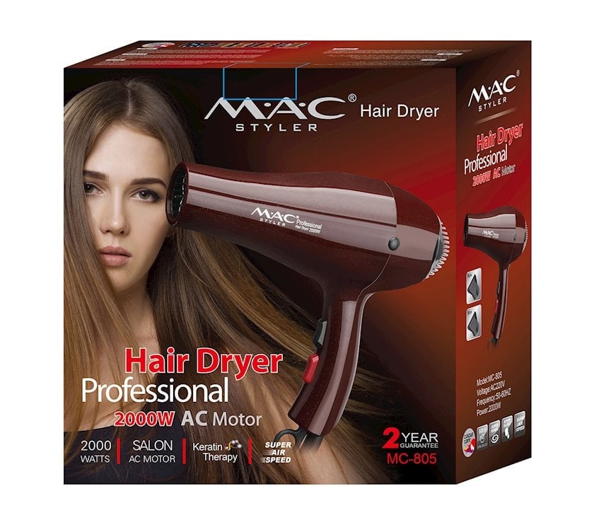 Фен MAC Styler MC-805 — это удобный и мощный фен для ежедневного использования, разработанный для быстрого высушивания и бережной укладки волос. Оснащён несколькими режимами скорости и температуры, а также концентрирующей насадкой, позволяющей точечно направлять поток воздуха. Подходит как для домашнего, так и для лёгкого профессионального применения.