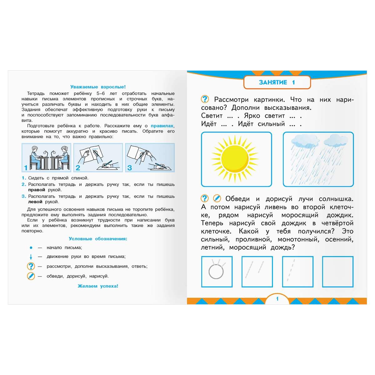Har bir sahifada yorqin va jozibali tasvirlar mavjud bo‘lib, ular bolalarga xatni haqiqiy narsalar va voqealar bilan bog‘lashga yordam beradi. Yozuvlar bolalarning yosh xususiyatlarini hisobga olgan holda yaratilgan bo‘lib, ularning o‘lchami va shrifti yozuv ko‘nikmalarini optimal darajada o‘zlashtirishga moslashtirilgan. "Birinchi yozuvlar" turkumidagi qo‘llanmalardan foydalanish o‘qishga qiziqishni rag‘batlantiradi, qo‘l motorikasini yaxshilaydi va harakat koordinatsiyasini rivojlantiradi. Bolaga ushbu yozuvlar bilan yozish asoslarini oson va quvonch bilan o‘zlashtirishga yordam bering, uni maktabga ishonch va yangi majburiyatlarga tayyor holda tayyorlang.