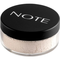 NOTE Loose Powder — yuzga baxmaldek silliqlik beruvchi va makiyajni kun davomida mustahkamlovchi mayda dispersiyali pudra. Yengil teksturasi tufayli terida deyarli sezilmaydi, teshikchalarni ta’kidlamaydi va quritmaydi. Barcha teri turlari, jumladan sezgir teri uchun ham mos. Ham to‘liq surtish, ham T-zonani nuqtali matlashtirish uchun ideal. Tarkibi E vitamini va makkajo‘xori kraxmali bilan boyitilgan bo‘lib, nafaqat bezak, balki parvarishlovchi xususiyatga ham ega.