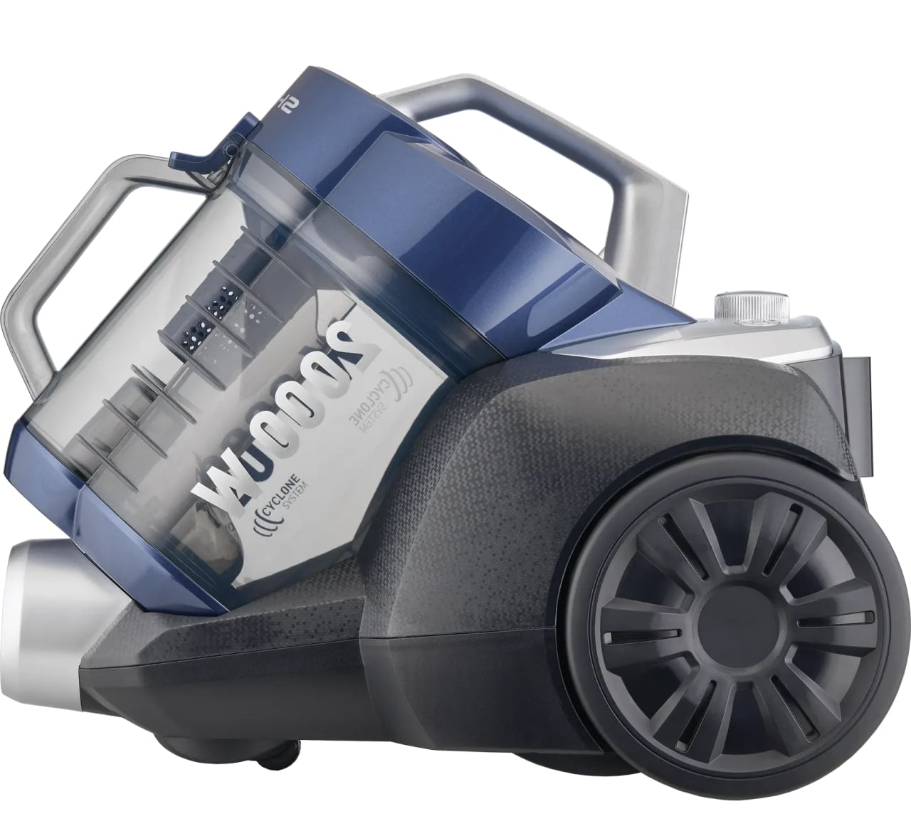 В качестве пылесборника используется контейнер объёмом 2 литра, который легко очищается и не требует расходных мешков. Электронный индикатор заполнения своевременно подсказывает, когда необходимо опустошить контейнер. Для точной настройки под разные типы поверхностей предусмотрен регулятор мощности, а уровень шума 78 дБ делает уборку более комфортной.