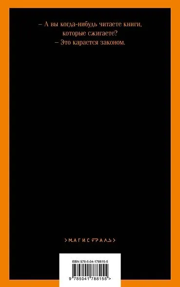 Философская антиутопия Рэя Брэдбери рисует беспросветную картину развития постиндустриального общества. Роман, принесший своему творцу мировую известность. Сенсационным было заявление Брэдбери в 2007 году, что «451° по Фаренгейту» понимают неправильно. Эта книга не о правительственной цензуре, это история о том, как телевидение уничтожает интерес к чтению книг. В начале 1950-х большинство американцев в глаза не видело телевизора, однако Брэдбери предсказал наступление новой эры свободы, достатка и развлечений, когда желание быть счастливым, помноженное на политкорректность, приведет к запрету книг. «Цветным не нравится книга "Маленький черный Самбо". Сжечь ее... Белым неприятна "Хижина дяди Тома". Сжечь и ее тоже. Кто-то написал книгу о том, что курение предрасполагает к раку легких. Табачные фабриканты в панике. Сжечь эту книгу. ...книга — это заряженное ружье в доме соседа. Сжечь ее! Разрядить ружье!»