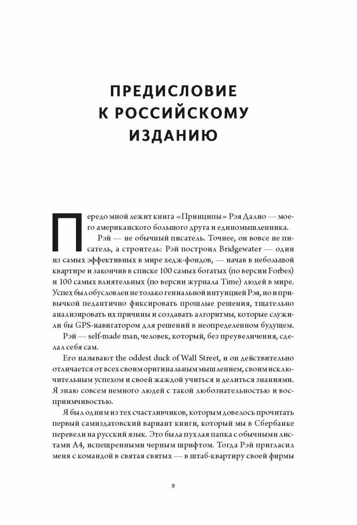 О книге Жизненные и управленческие принципы Рэя Далио и история его детища, крупнейшего в мире хедж-фонда Bridgewater. Принципы, которые он формировал и использовал в течение сорока лет, добиваясь выдающихся результатов в жизни и бизнесе. И которые может использовать любой человек или компания для достижения своих целей. Рэй Далио не просто пересказывает свои принципы и свою историю в книге, он делится размышлениями, которые за ними стоят. Структура книги Первая часть - краткая биография Рэя Далио и история его детища, хедж-фонда Bridgewater, на фоне экономических перипетий начиная с 1970-х и по сей день. Вторая часть - принципы жизни Рэя. Третья часть - принципы работы, позволившие создать уникальную корпоративную культуру Bridgewater. Особенности Бестселлер #1 New York Times Книга № 6 на всех разделов Для кого эта книга Для финансистов, руководителей, собственников бизнеса и вообще всех, кому интересны жизненные принципы Рэя Далио, основателя крупнейшего в мире хедж-фонда. Об авторе Рэй Далио родился и вырос в обычной семье со средним достатком на Лонг-Айленде. В 26 лет он основал инвестиционную компанию Bridgewater Associates с первым офисом в одной из комнат своей съемной трехкомнатной квартиры. В течение следующих 42 лет он превратил Bridgewater Associates в пятую самую важную частную компанию в США (по версии Fortune). Далио удалось добиться таких успехов благодаря внедрению принципа меритократии идей, основанного на полной открытости, предельной прозрачности и принципе принятия решений с учетом компетентности. Рэй Далио убежден, что большинство людей и компаний могут воспользоваться его принципами для достижения собственных целей. Рэй Далио входит в список 100 самых влиятельных людей планеты (по версии Time) и 100 самых богатых людей в мире (по версии Forbes). Его уникальные принципы инвестирования изменили всю отрасль, за что журнал CIO назвал его "Стивом Джобсом инвестирования". Рэй Далио считает, что добился успеха не потому, что он особенный, а потому, что его успех стал результатом применения принципов, которые он вывел, зачастую учась на своих ошибках. И эти принципы могут быть полезны другим людям. Когда Рэй Далио писал эту книгу в возрасте 68 лет, его главной целью было поделиться этими принципами, если другие люди сочтут их ценными. 8-е издание.