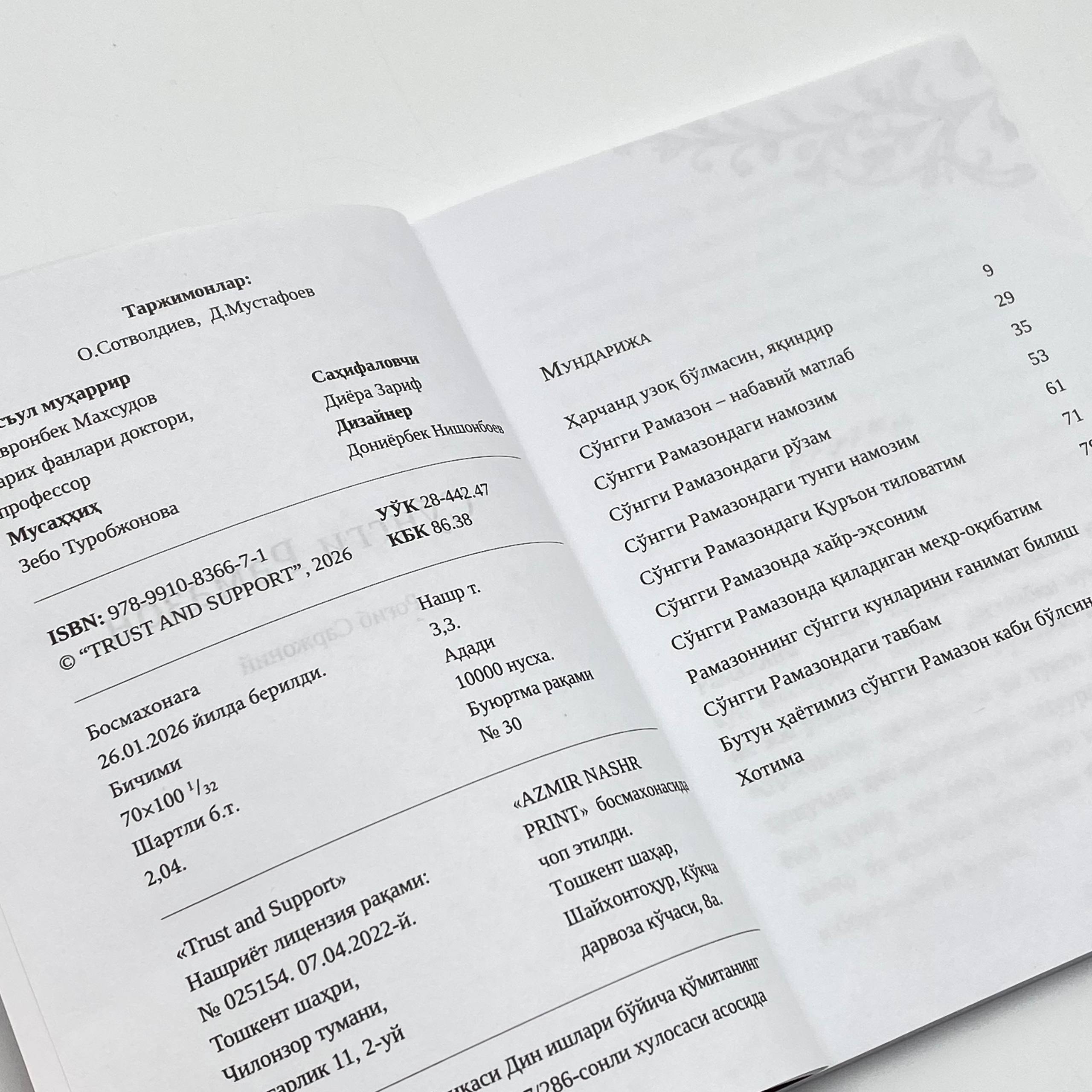 Рамазон-ойларнинг султони! Бу ойнинг ҳар бир дақиқасини, ғанимат соатларини беҳуда ўтказиб юбормаслик лозим. Мазкур китобда Рамазонни қандай кутиб олиш ва қай тариқа унумли фойдаланиш ҳақида сўз боради.