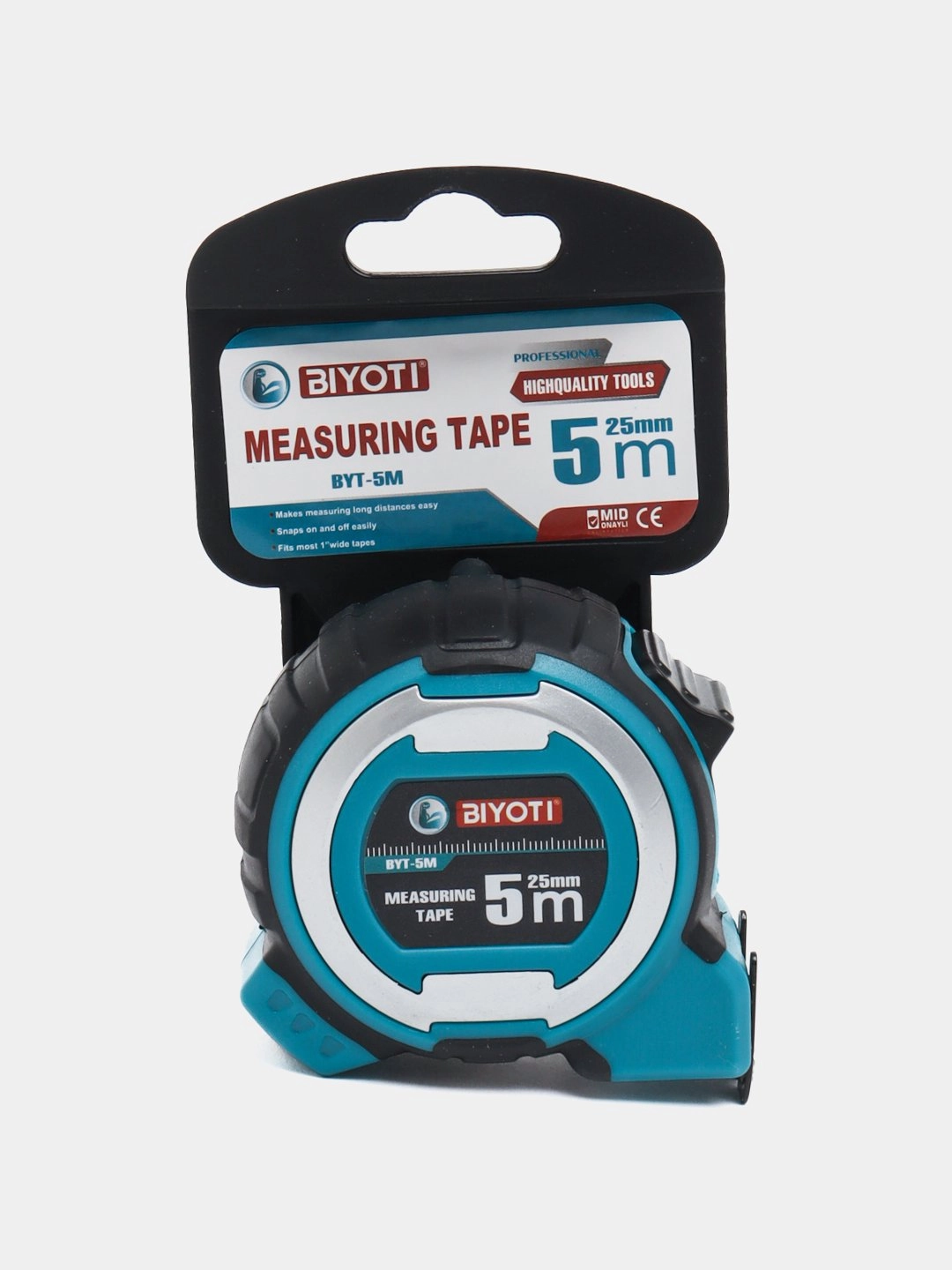 BIYOTI BYT-5*25 m – bu zamonaviy o‘lchovchi ruletka bo‘lib, uning uzunligi 5 metr, lenta kengligi esa 25 mm. Qurilish, montaj va maishiy ishlarda aniq o‘lchovlar olish uchun mo‘ljallangan. Kengroq lenta o‘lchovlarni aniqroq ko‘rish imkonini beradi va katta obyektlarni o‘lchashda qulaylik yaratadi.