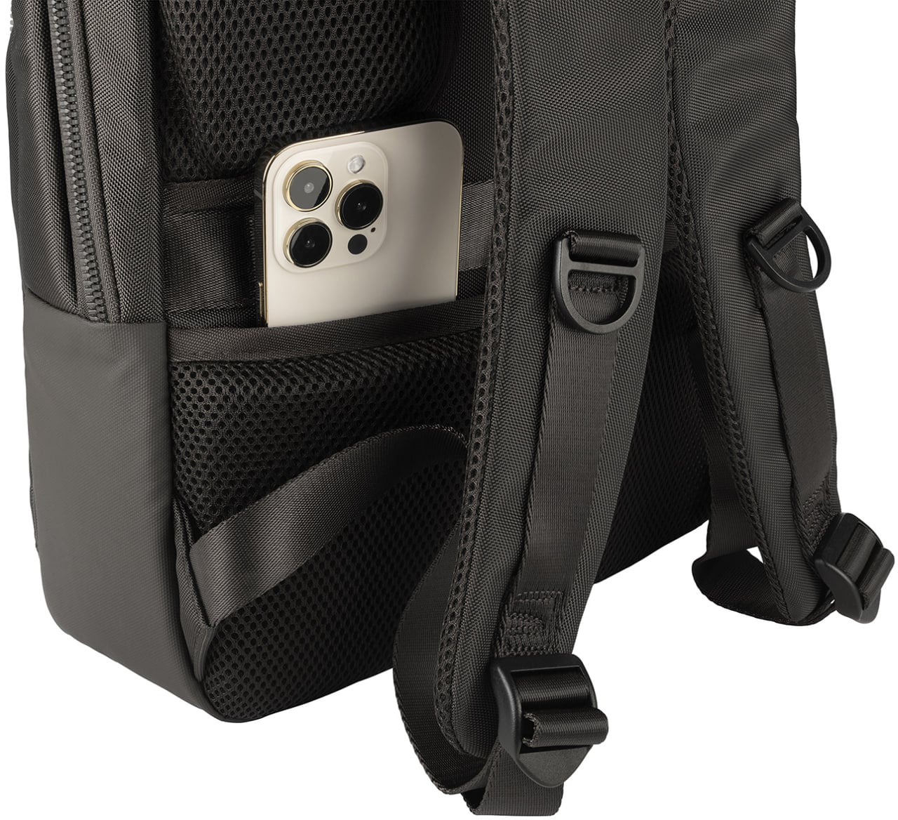 Два вместительных передних кармана позволяют удобно разместить бутылку с водой, ручки, брелоки и телефон — всё всегда под рукой и легко найти. Основное отделение оснащено защитным карманом для устройств размером до 38×25×2,5 см и дополнительным карманом для аксессуаров, таких как зарядное устройство и мышь. Скрытый защитный карман на спине обеспечивает безопасное хранение ценных вещей.