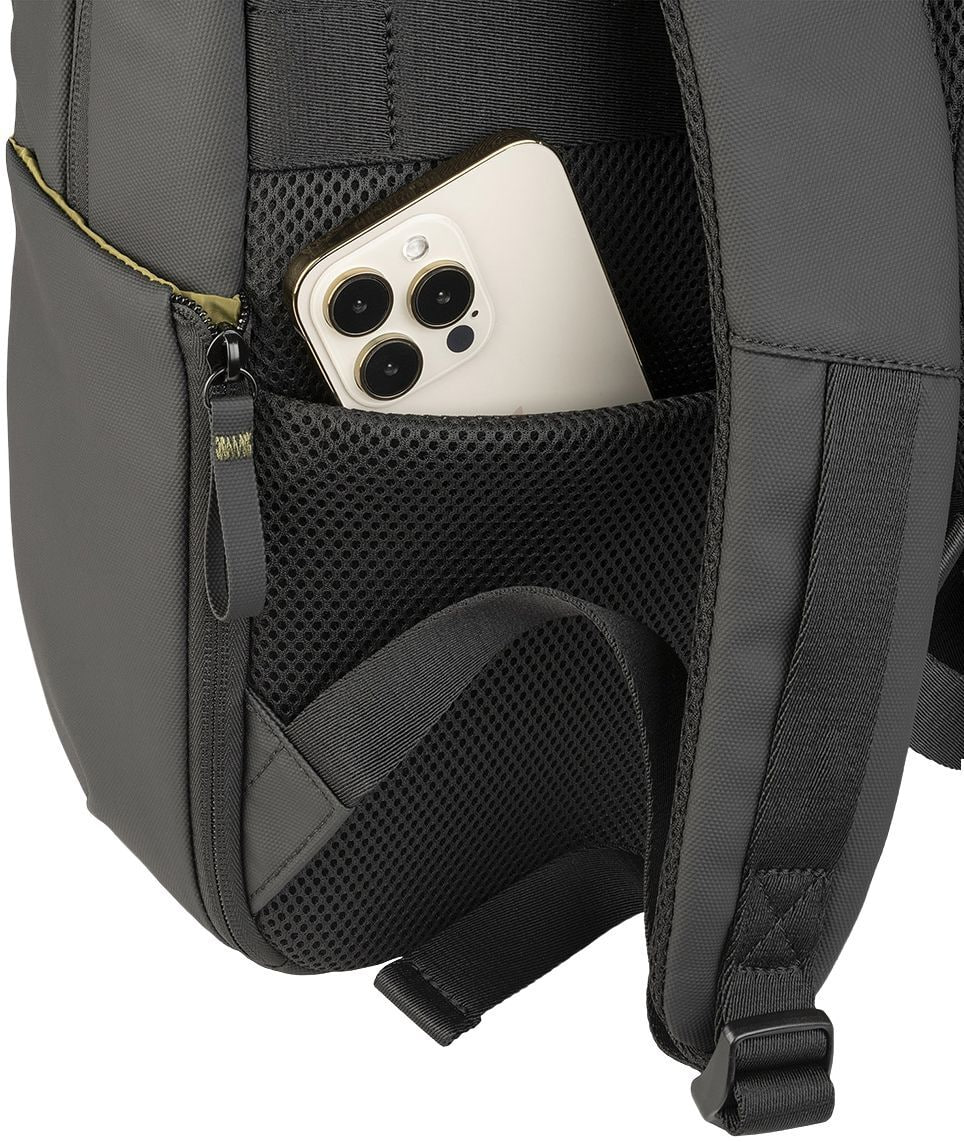 Рюкзак оснащен просторным основным отделением, глубоким и вместительным передним карманом, защитным задним карманом для ценных вещей, а также боковыми карманами на молнии — идеально подходящими для бутылок с водой или зонтиков. Внутри предусмотрен специальный карман для трекера (не входит в комплект), а на спине есть удобный ремень для крепления к чемодану, который делает рюкзак незаменимым для путешествий.