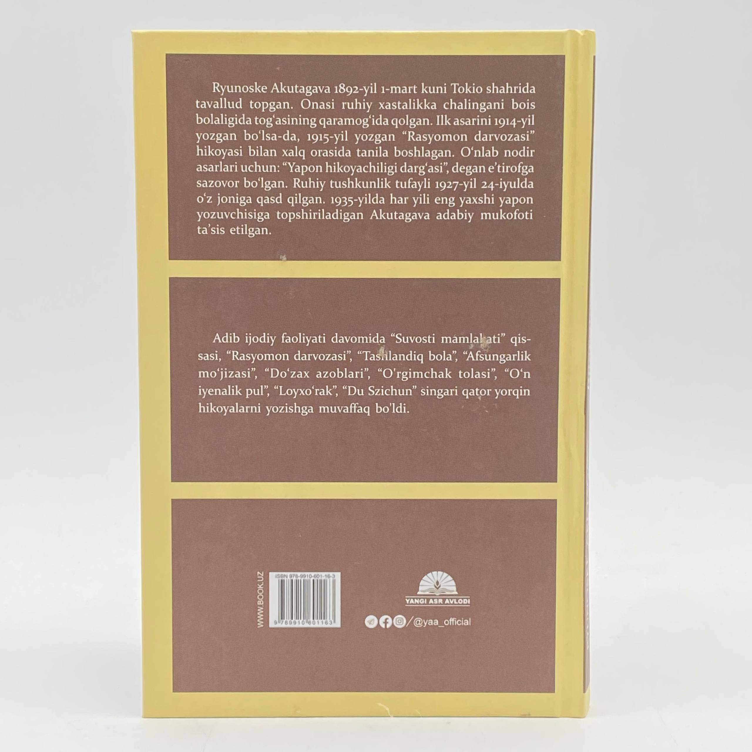 Болалигида онасининг руҳий ҳасталикка чалиниши оқибатида тоғаси қарамоғида қолган Рюноске Акутагаванинг ҳаёти машаққатлар билан бошланди. Дастлаб, япон ривоятлари ҳамда хитой классик адабиётига қизиқиш билдирган Акутагава кейинчалик Ғарб адабиёти билан яқиндан танишди. Токио император институтида инглиз адабиёти йўналишида таҳсил олди. Адибнинг ҳиссиётга лиммо-лим қалби атрофидаги ҳар бир воқеадан таъсирланиши оқибатида муаллиф ўзи гувоҳ бўлган реал ҳодисаларни асарларида акс эттира бошлади. Яқин танишлари прототипи ёзувчи асарлари қаҳрамонлари сифатида тасвирланди. Адиб қисқа ҳаёти давомида ơънлаб ўлмас асарлар яратиб, "Япон ҳикоячилик мактаби дарғаси", дея эътироф этилди. 1935-йилда таъсис этилган Акутагава мукофоти йилнинг энг яхши япон ёзувчисига топширилиши ҳам адибнинг япон адабиётида ўчмас из қолдирганидан далолат беради.
