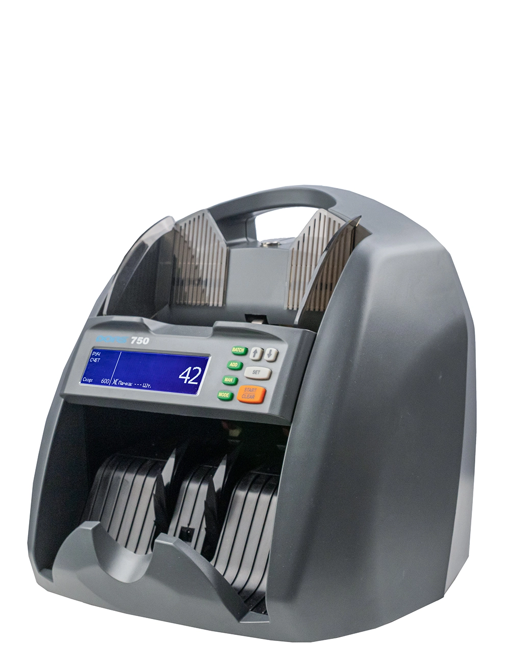 DORS 750 — bu professional ko‘p valyutali banknota sanagichi bo‘lib, katta hajmdagi kassaviy ishlar uchun mo‘ljallangan. Qurilma aniq hisob-kitob, aralash paketlarda avtomatik nominal aniqlash (bitta valyuta doirasida) va keng qamrovli haqiqiylik nazoratini ta’minlaydi.