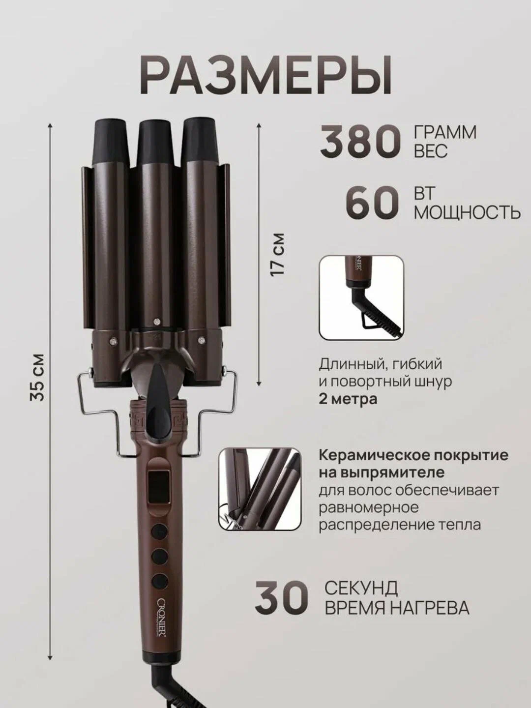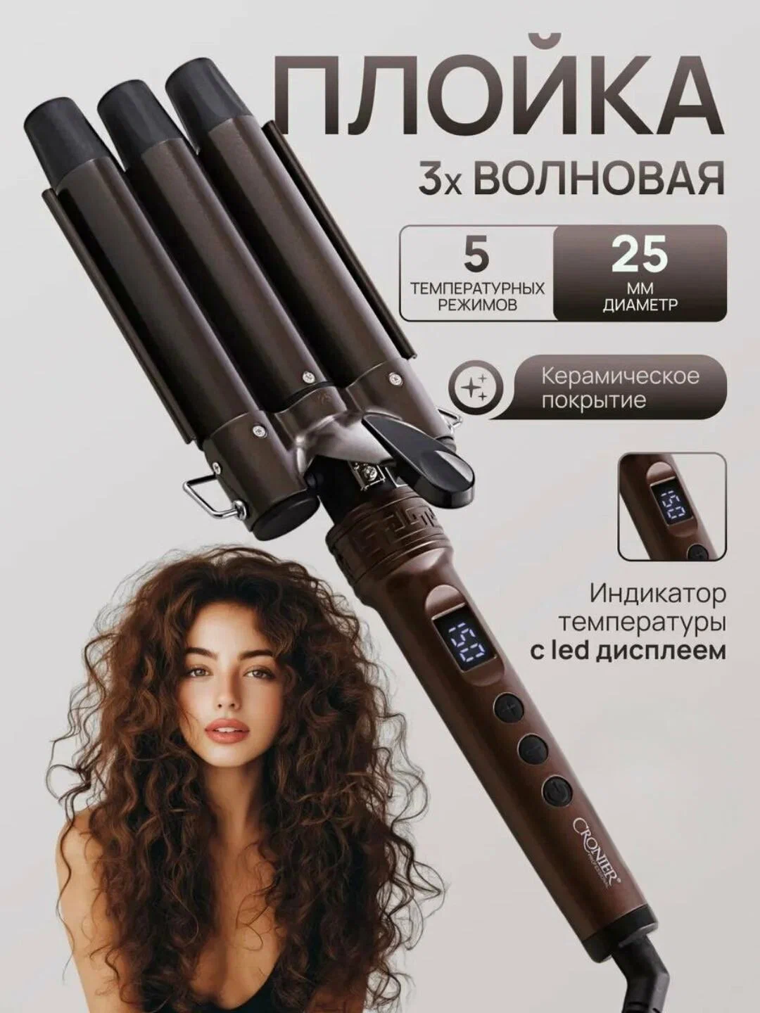 Cronier CR-2066: Профессиональная тройная плойка (Deep Waver)
