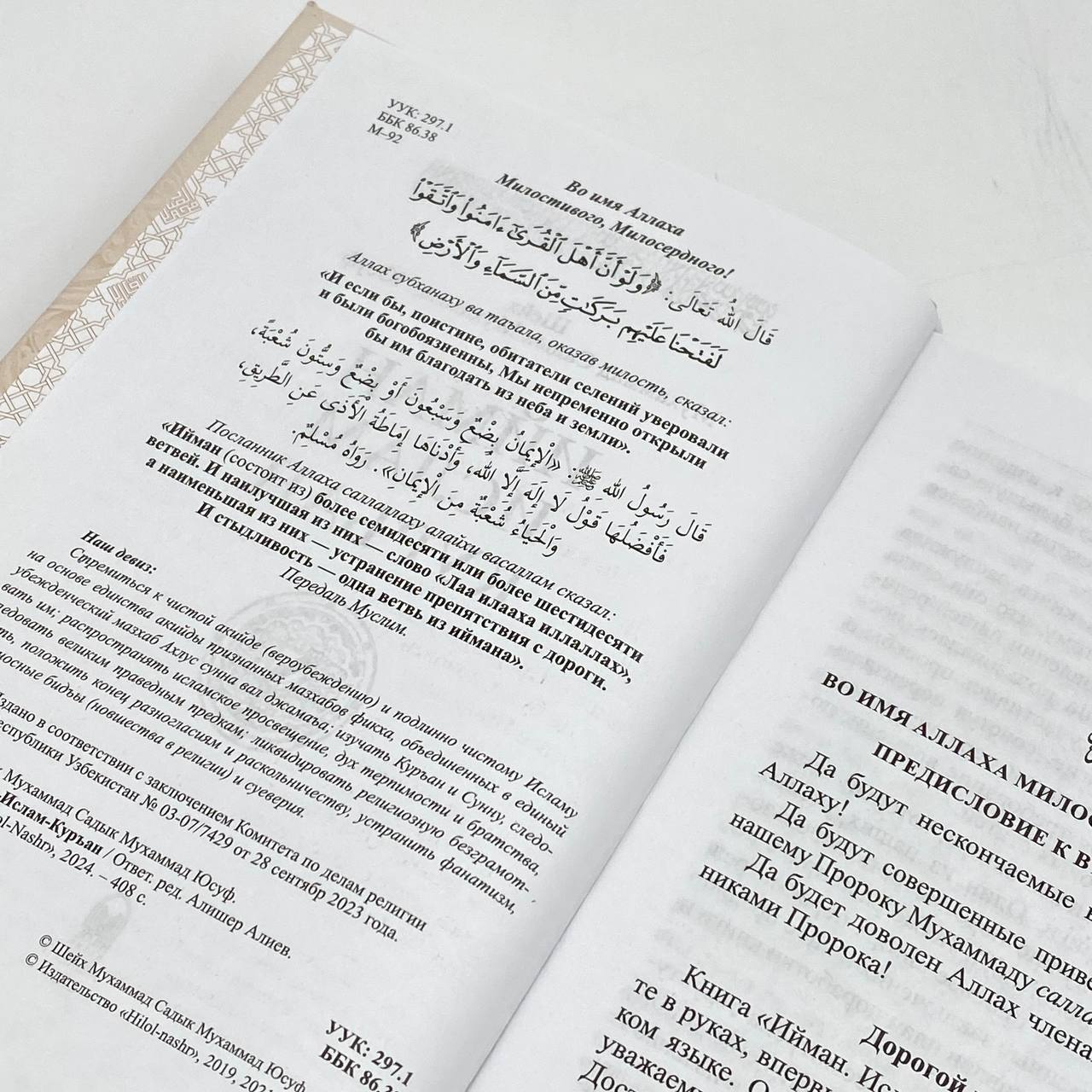 Книга впервые была издана на узбекском языке в 1991 году под названием «Ийман». В ней представлены сведения о том, что такое Ислам и ийман, как они понимаются в терминологии шариата, как относится Ислам к знаниям и к поиску знаний. В книге представлены научные доказательства относительно вопросов иймана, веры в ангелов и пророков. Все сведения подкреплены аргументами из Куръана и Сунны.