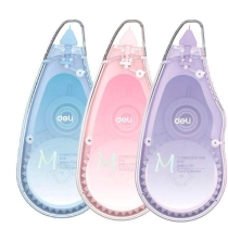 Deli 8137 Macaron seriyasidagi shtrix lentasi — xatolarni tez va aniq tuzatish uchun qulay vosita. Quruq turdagi lenta qog‘ozga silliq yopishadi va darhol ustiga yozish mumkin, chunki uni quritish shart emas.