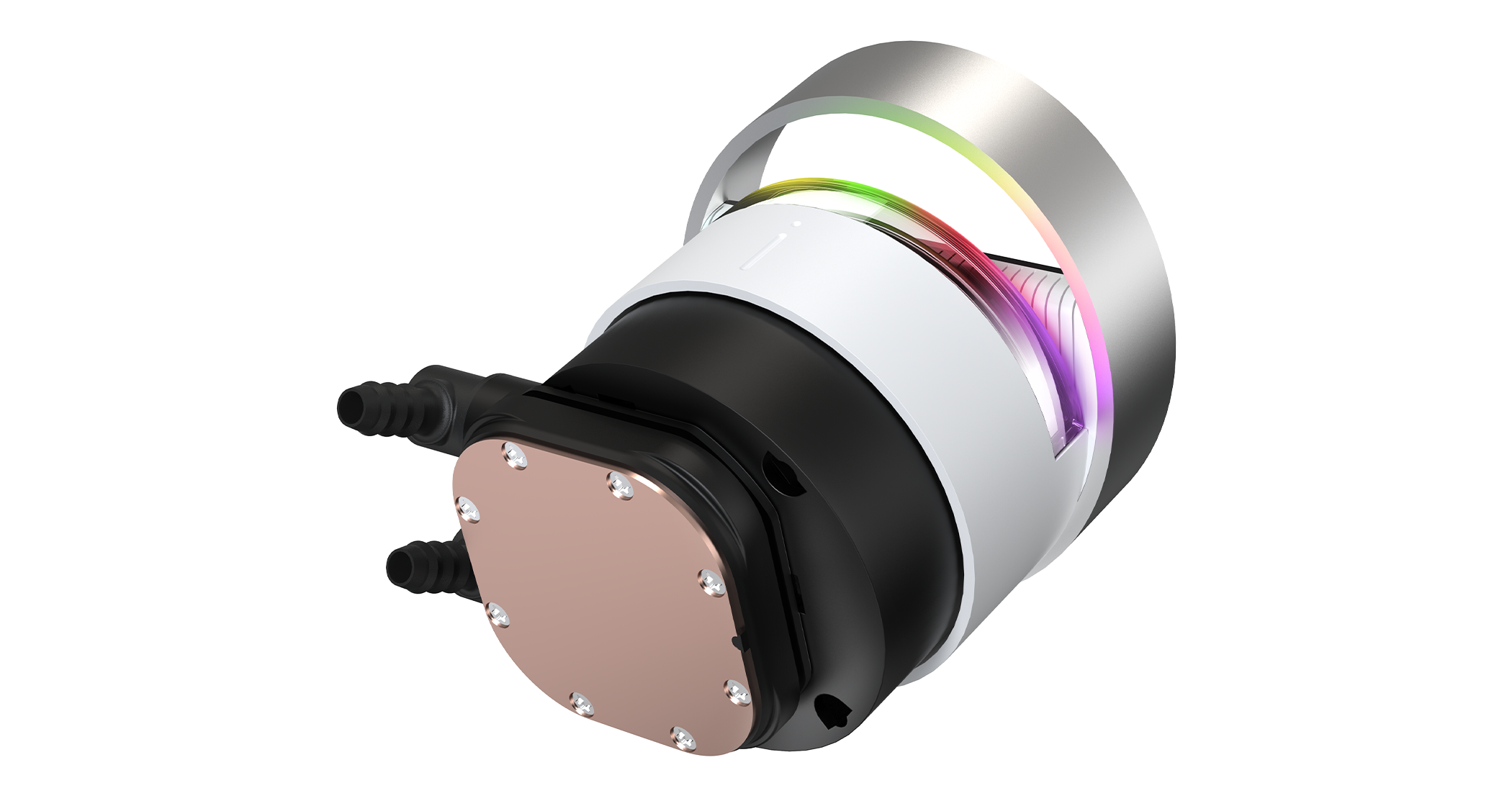 Тихая и мощная помпа: Насос со скоростью 3100 об/мин гарантирует стремительную циркуляцию хладагента. При этом уровень шума помпы составляет всего 27 дБ, что тише шепота.