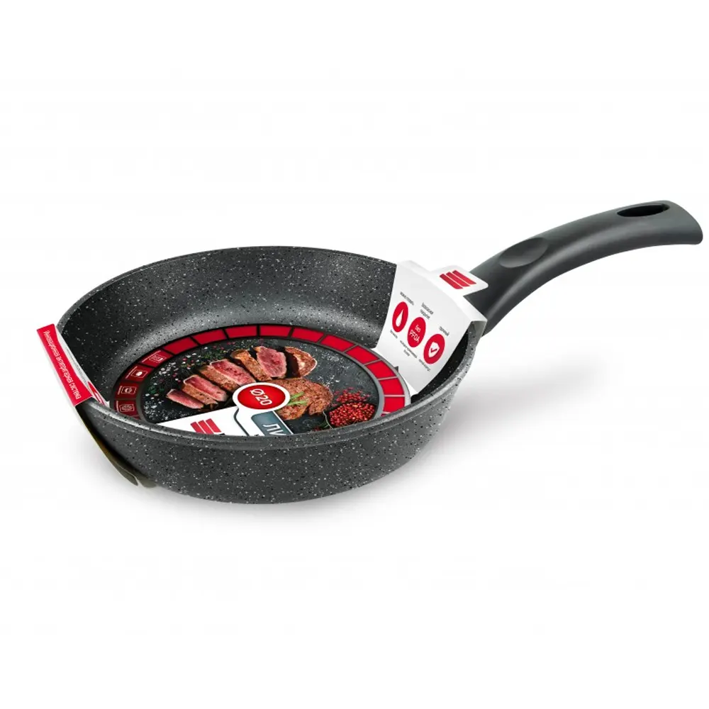Сковорода для ежедневного использования с антипригарным покрытием в модном цвете - покрытие с эффектом натурального камня «чёрный гранит». Практичный цвет помогает долго сохранять прекрасный внешним вид сковороды.
