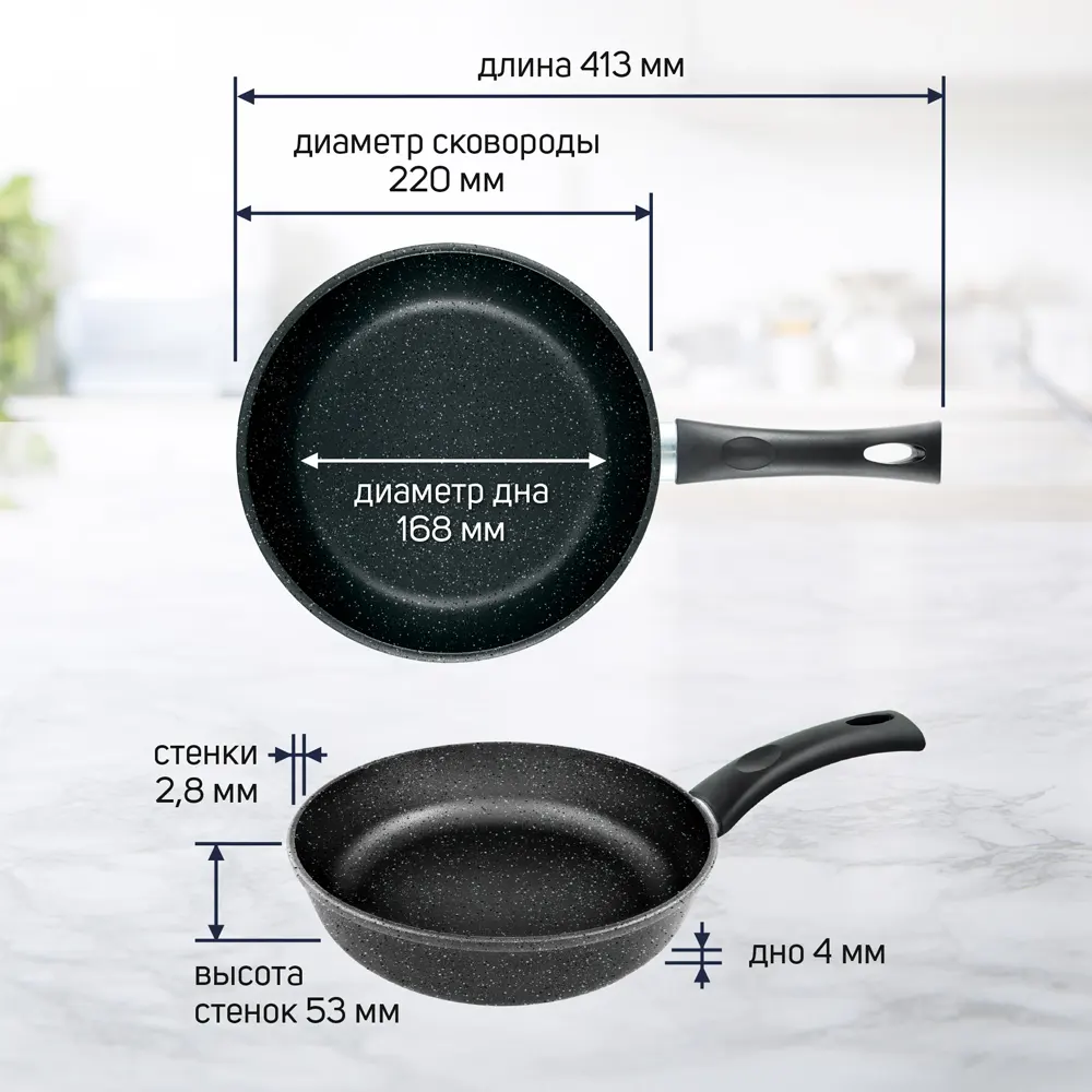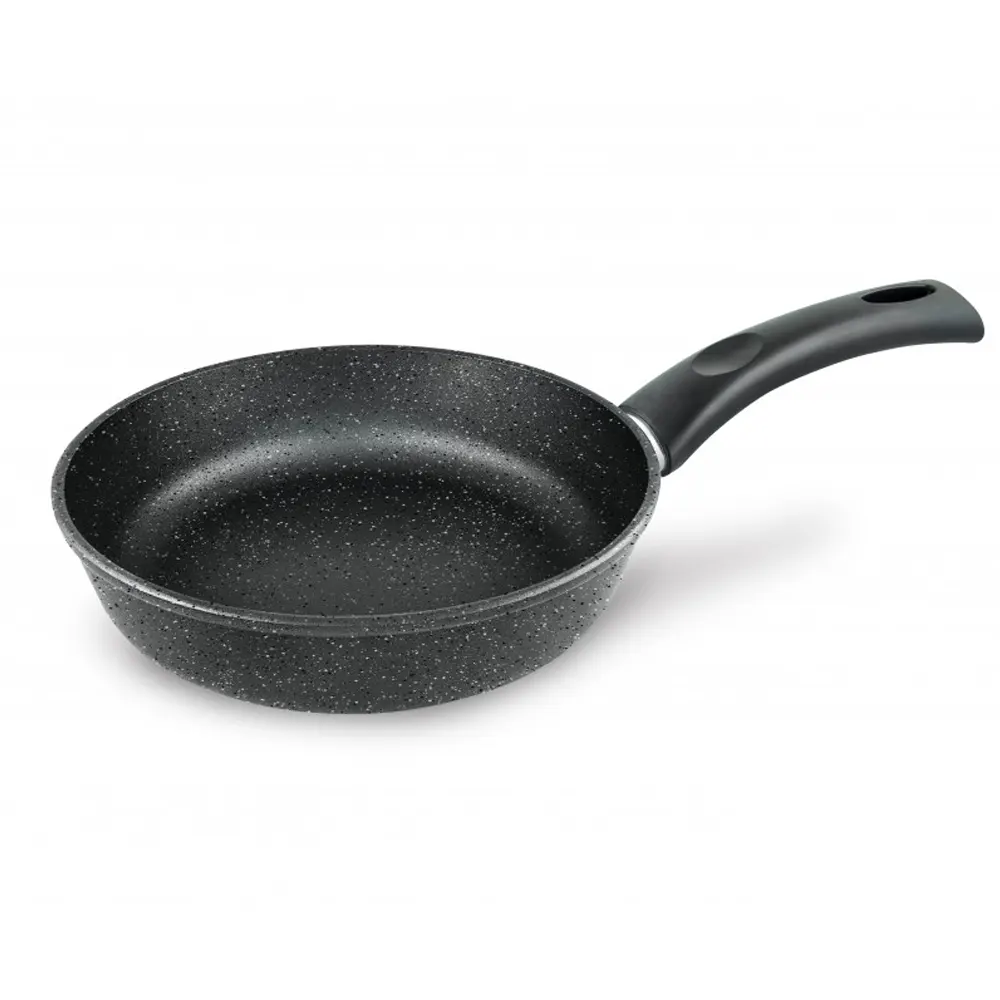 Сковорода для ежедневного использования с антипригарным покрытием в модном цвете - покрытие с эффектом натурального камня «чёрный гранит». Практичный цвет помогает долго сохранять прекрасный внешним вид сковороды.