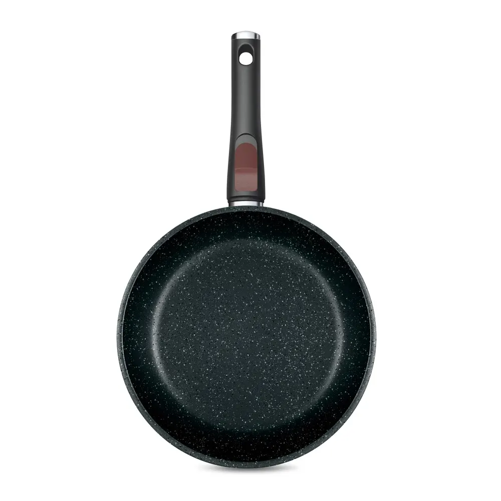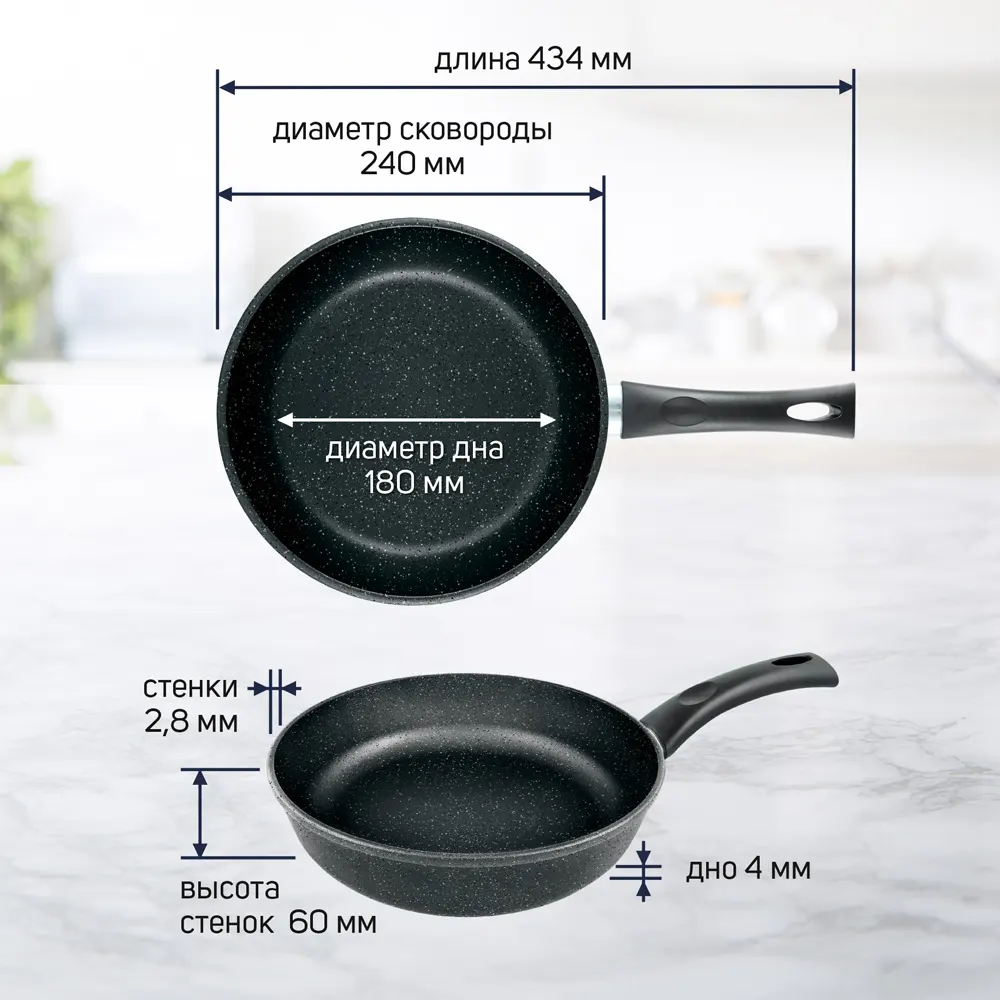 Сковорода для ежедневного использования с антипригарным покрытием в модном цвете - покрытие с эффектом натурального камня «чёрный гранит». Практичный цвет помогает долго сохранять прекрасный внешним вид сковороды.