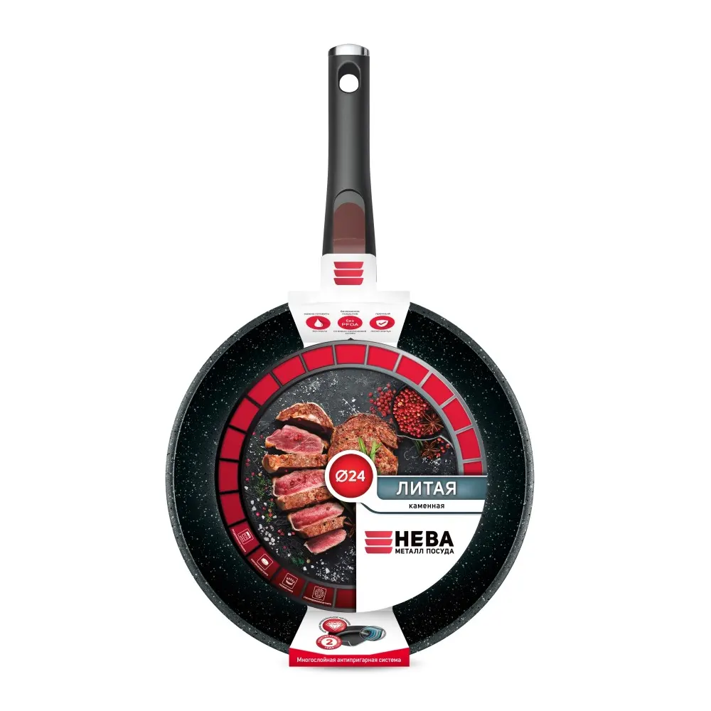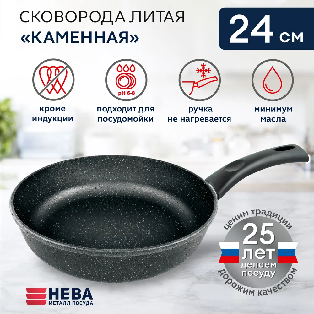 Корпус ковороды из литого алюминия не подвержен деформации (в отличие от штампованного) и гарантирует равномерный нагрев.