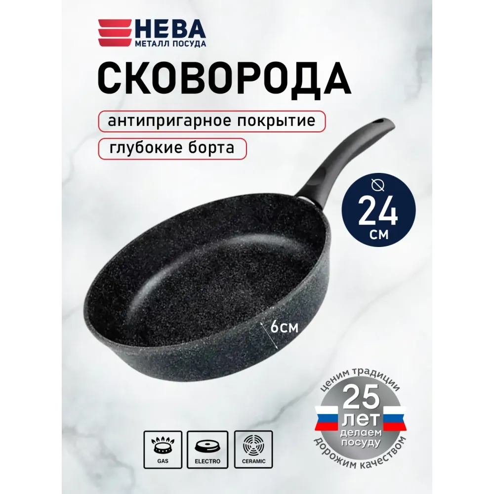Сковорода литая с антипригарным покрытием Neva Granite — идеальный выбор для приготовления разнообразных блюд из мяса, рыбы и овощей.