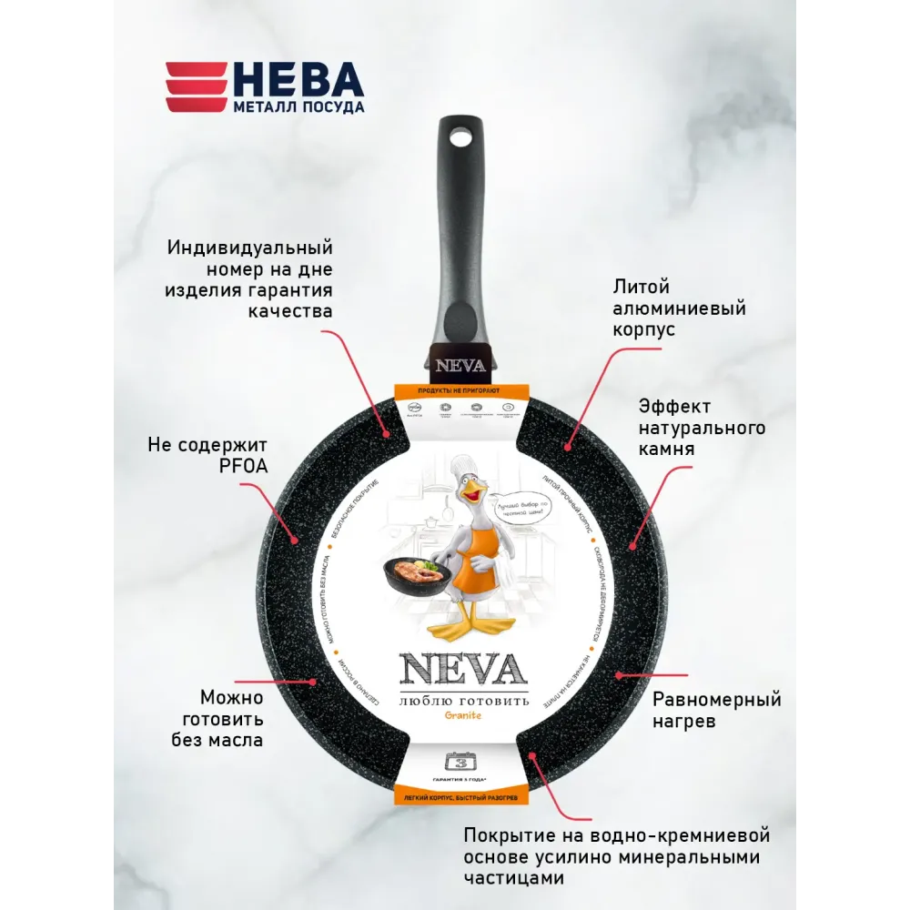 Сковорода литая с антипригарным покрытием Neva Granite — идеальный выбор для приготовления разнообразных блюд из мяса, рыбы и овощей.