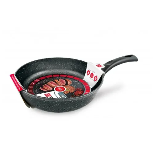 Сковорода для ежедневного использования с антипригарным покрытием в модном цвете - покрытие с эффектом натурального камня «чёрный гранит». Практичный цвет помогает долго сохранять прекрасный внешним вид сковороды.